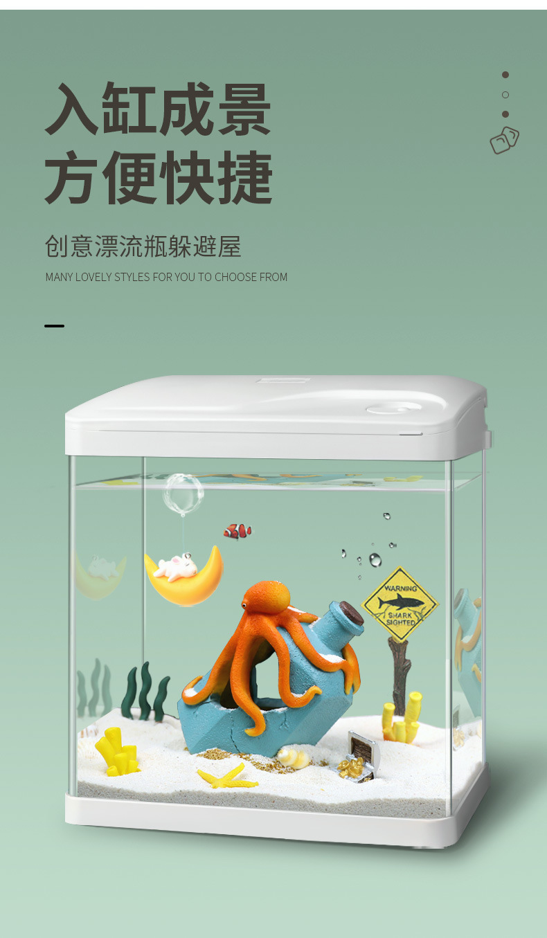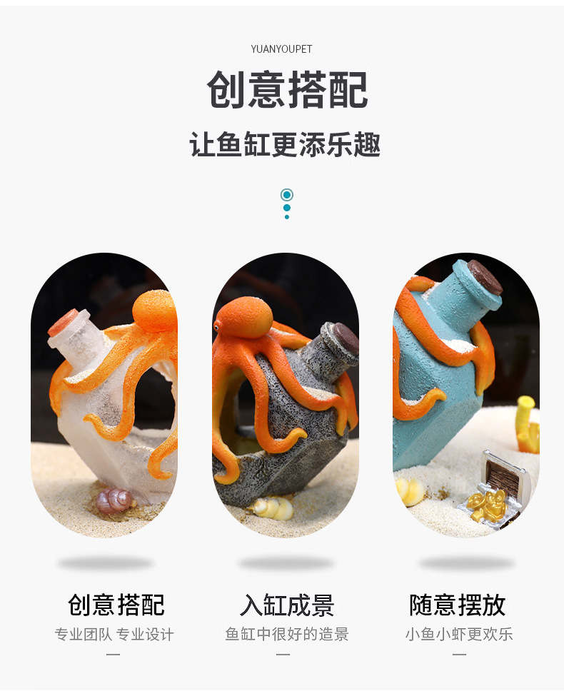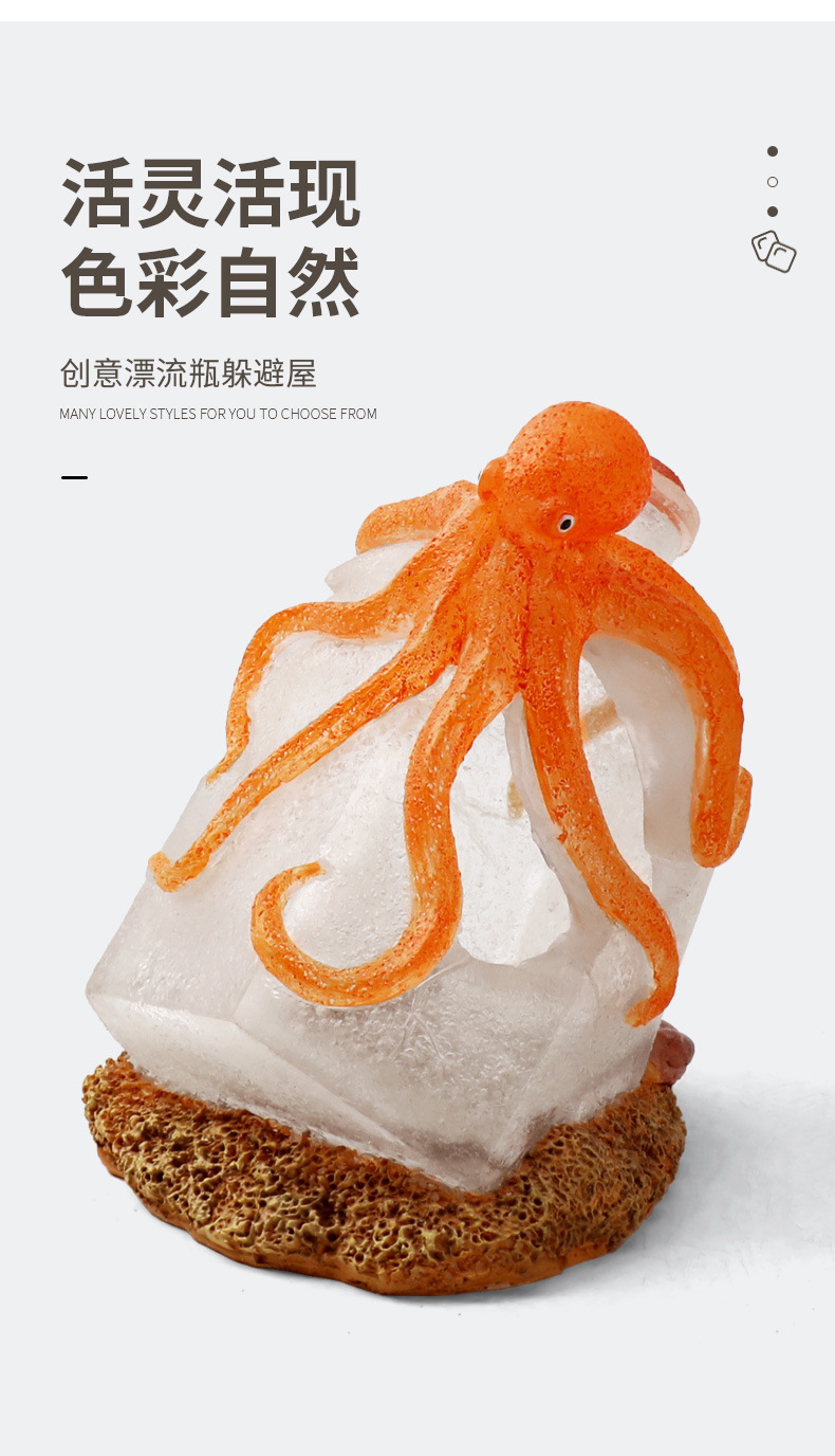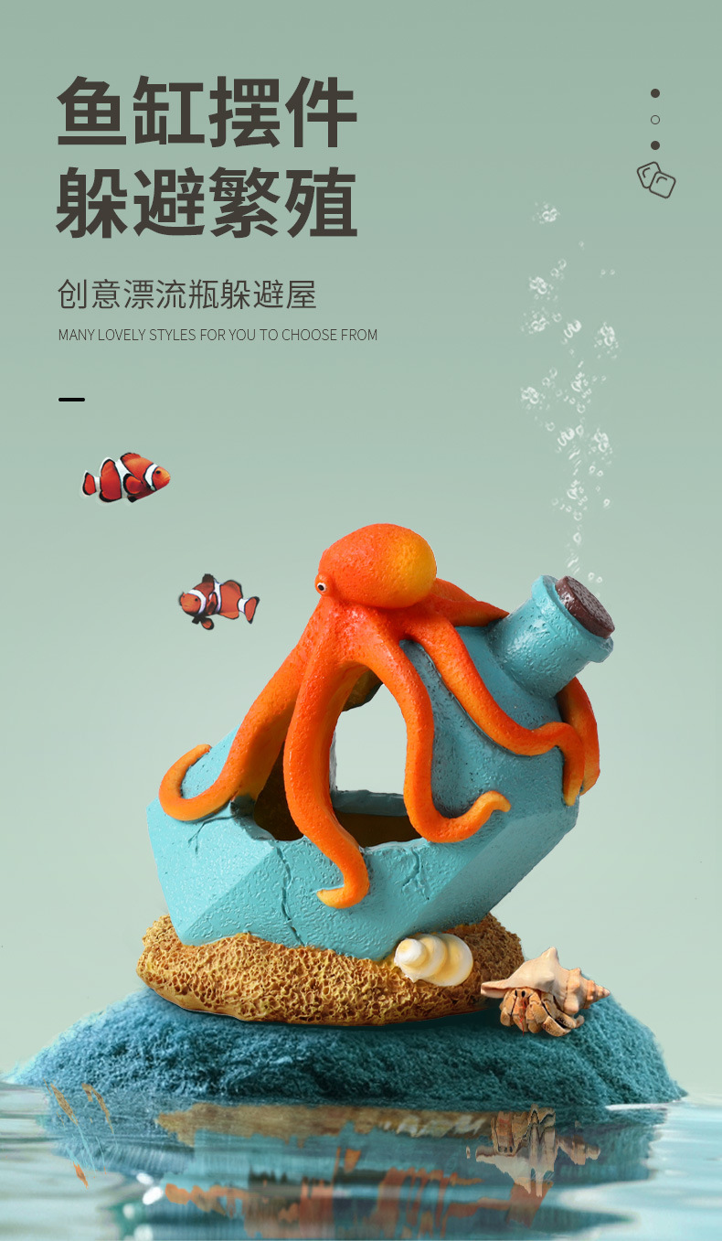 크로스보더 어항용 드리프트보틀 창의적인 장식품, 물고기와 새우 번식을 위한 은신처, 수족관 문어 장식, 피난처스토어 가기