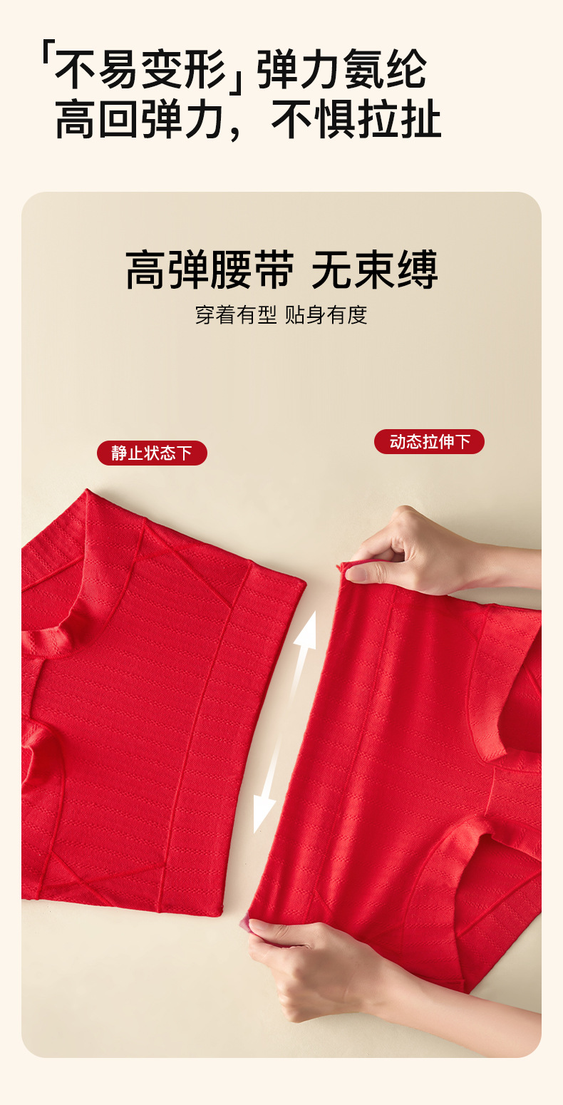 브닝 니언 레드 속옷 여성용 퓨어 코튼 통기성 높은 허리 플러스 사이즈 웨딩 안티 워킹 복부 틴티드 퓨어 코튼 트라이앵글 반바지 여성