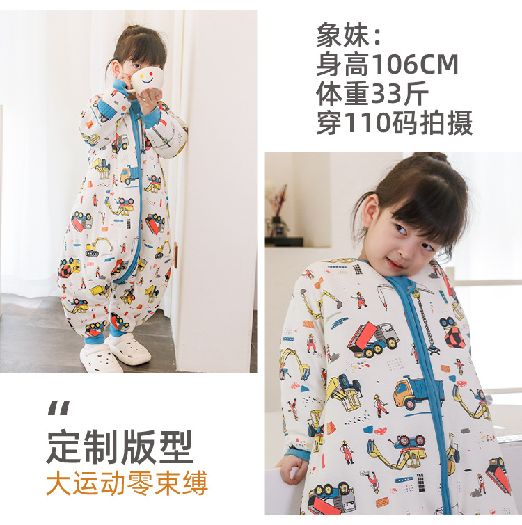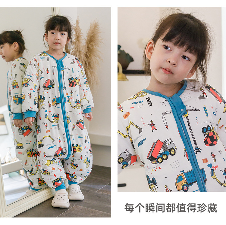 가을과 겨울을위한 Huxibei Baby Cotton 슬리핑 백 큰 어린이 다리 분할 킥 방지 플러스 사이즈 어린이 잠옷 두껍게스토어 가기