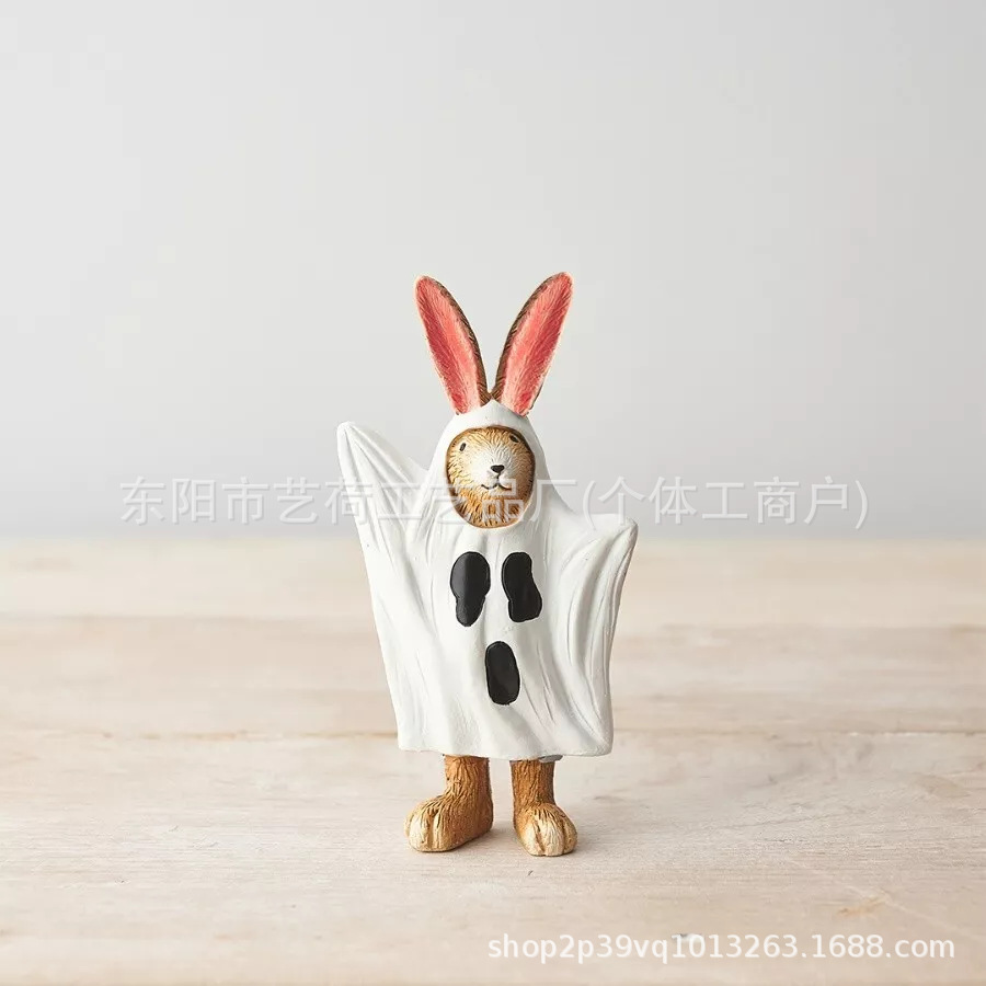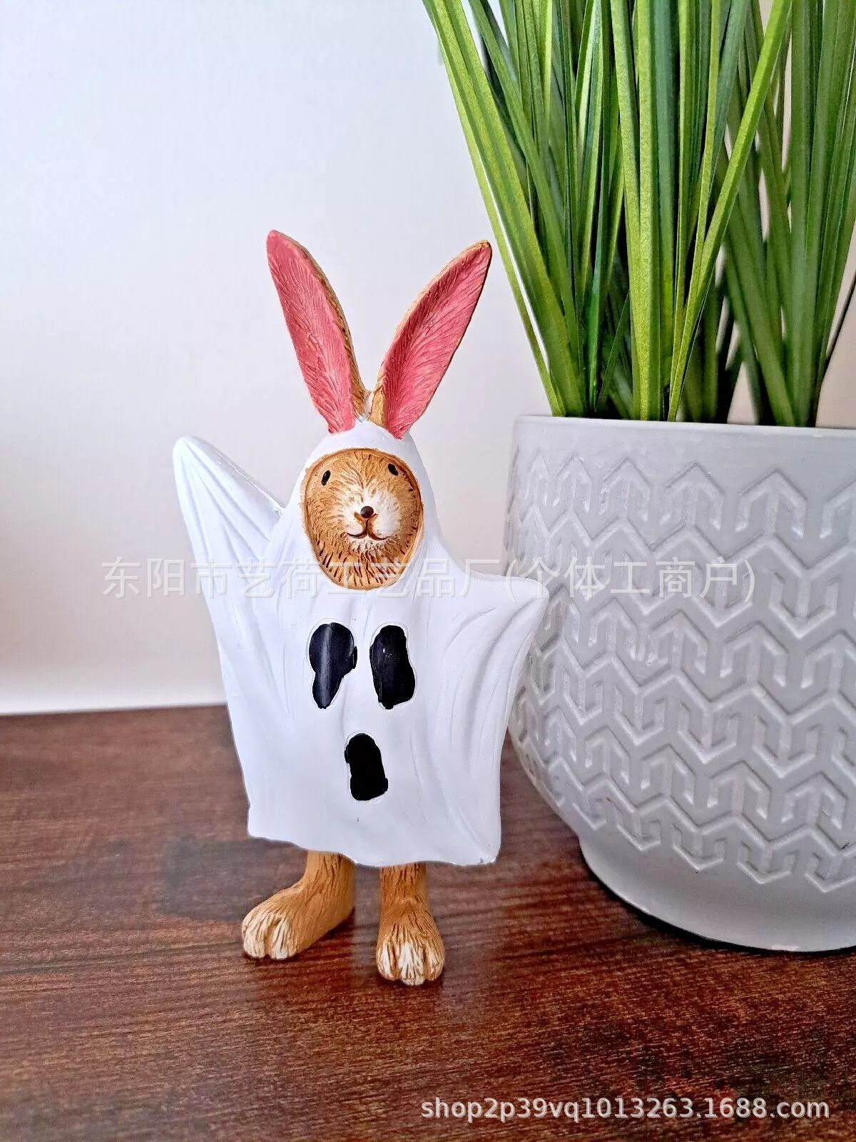 국경 간 토끼 유령 수지 공예 장식품 창조적 인 할로윈 장식 바탕 화면 작은 장식품 선물