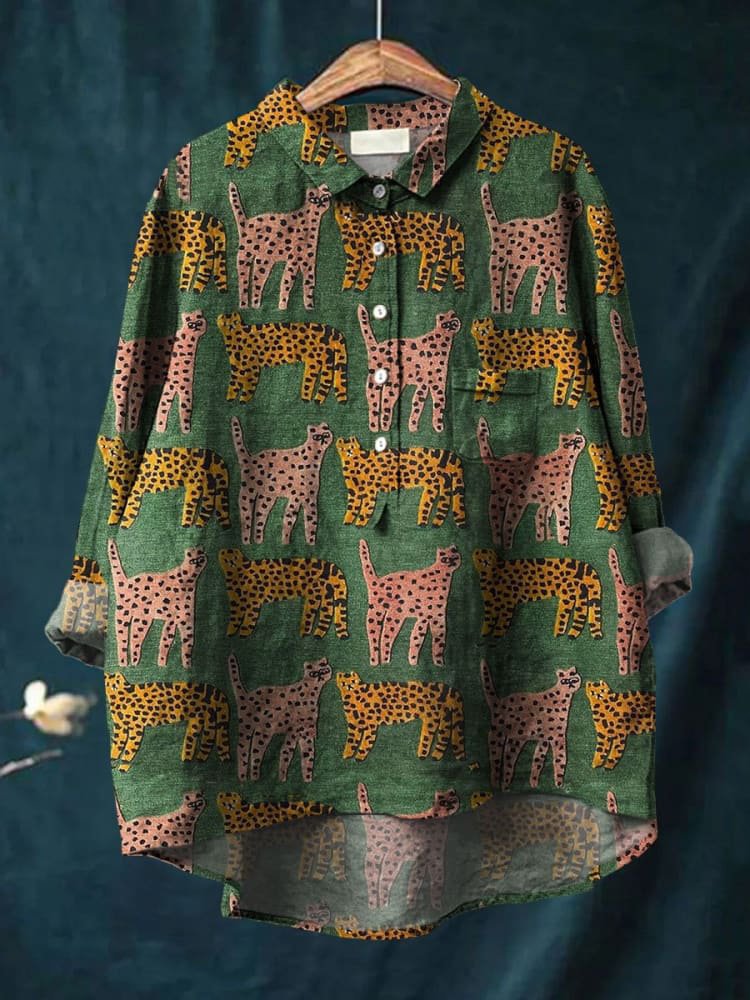 2025 독립 역 유럽 및 미국 국경 새로운 캐주얼 긴 소매 셔츠 동물 인쇄 하와이 긴 소매 크로스 국경 셔츠