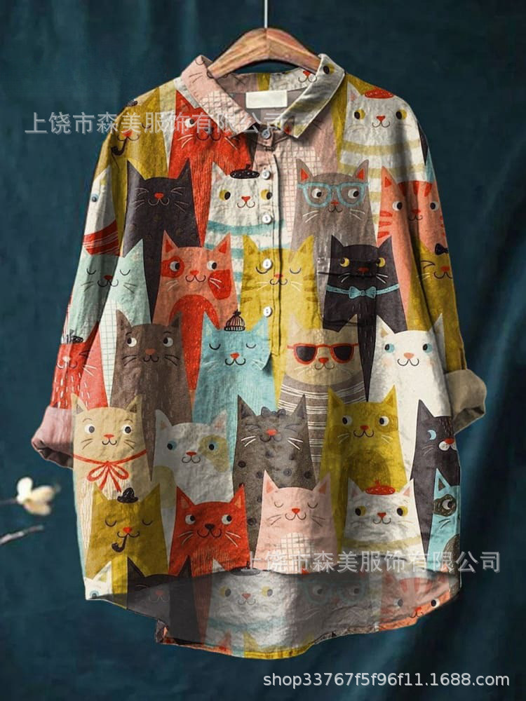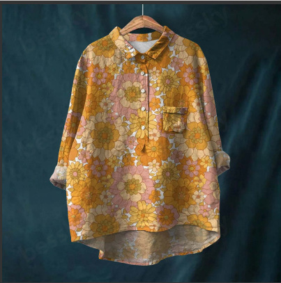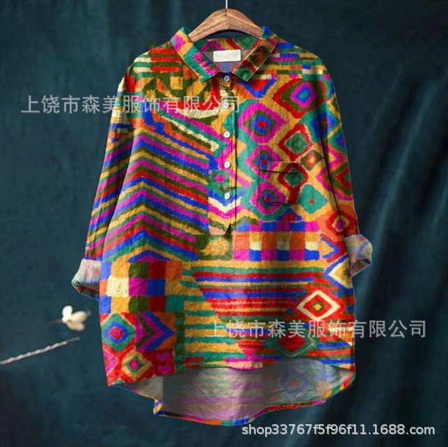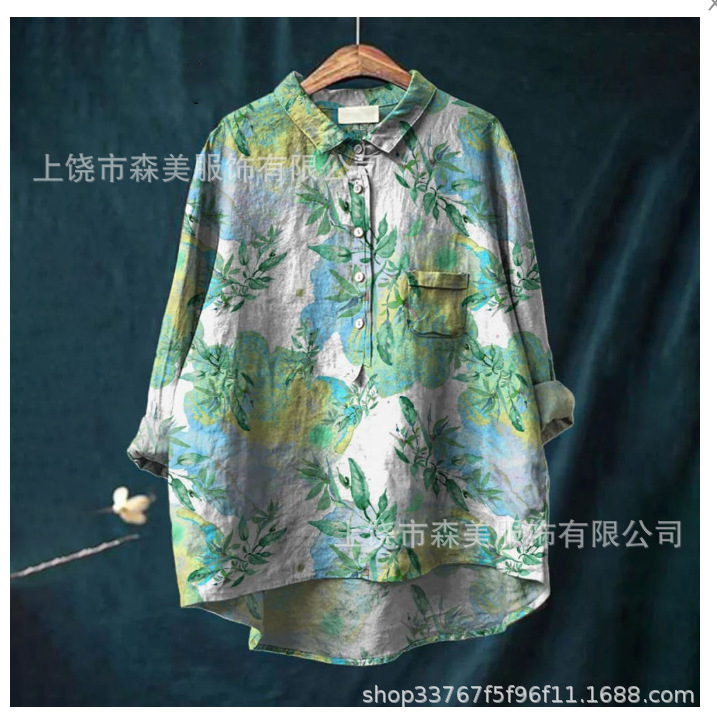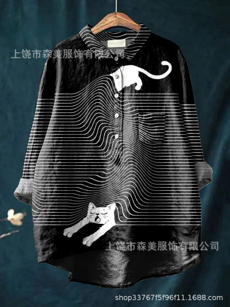 2025 독립 역 유럽 및 미국 국경 새로운 캐주얼 긴 소매 셔츠 동물 인쇄 하와이 긴 소매 크로스 국경 셔츠스토어 가기
