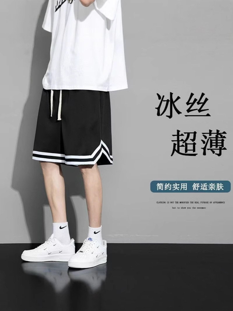 여름 새로운 스포츠 남자 캐주얼 아이스 실크 간단한 리본 바지 통기성 쿨 땀-위킹 반바지 유행 바지스토어 가기