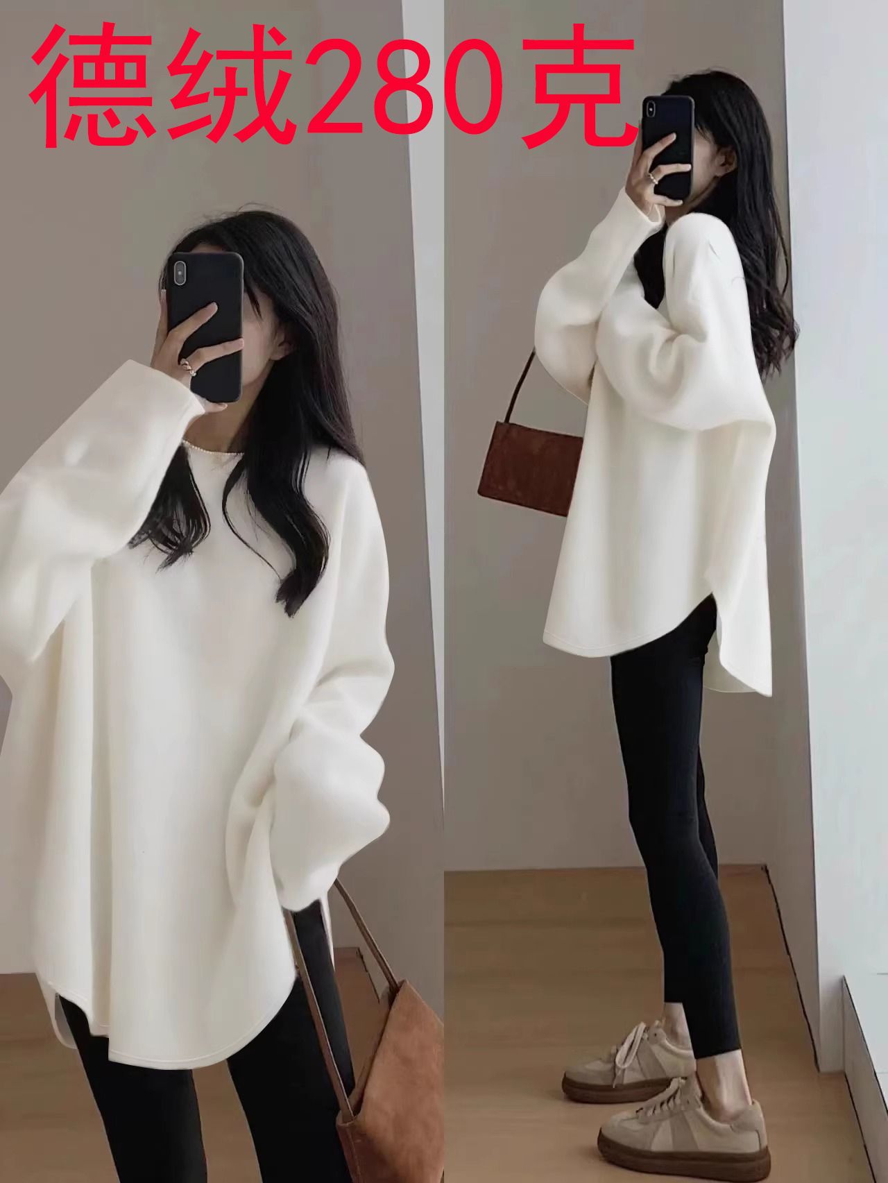 2025 최신 한국 스타일 다재다능한 벨벳 봄과 가을 긴 소매 바닥 셔츠 여성용 느슨한 중간 길이 불규칙한 탑스토어 가기