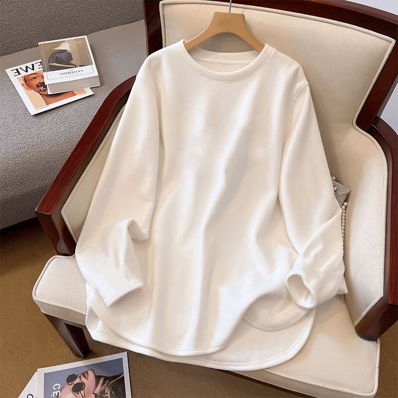2025 최신 한국 스타일 다재다능한 벨벳 봄과 가을 긴 소매 바닥 셔츠 여성용 느슨한 중간 길이 불규칙한 탑