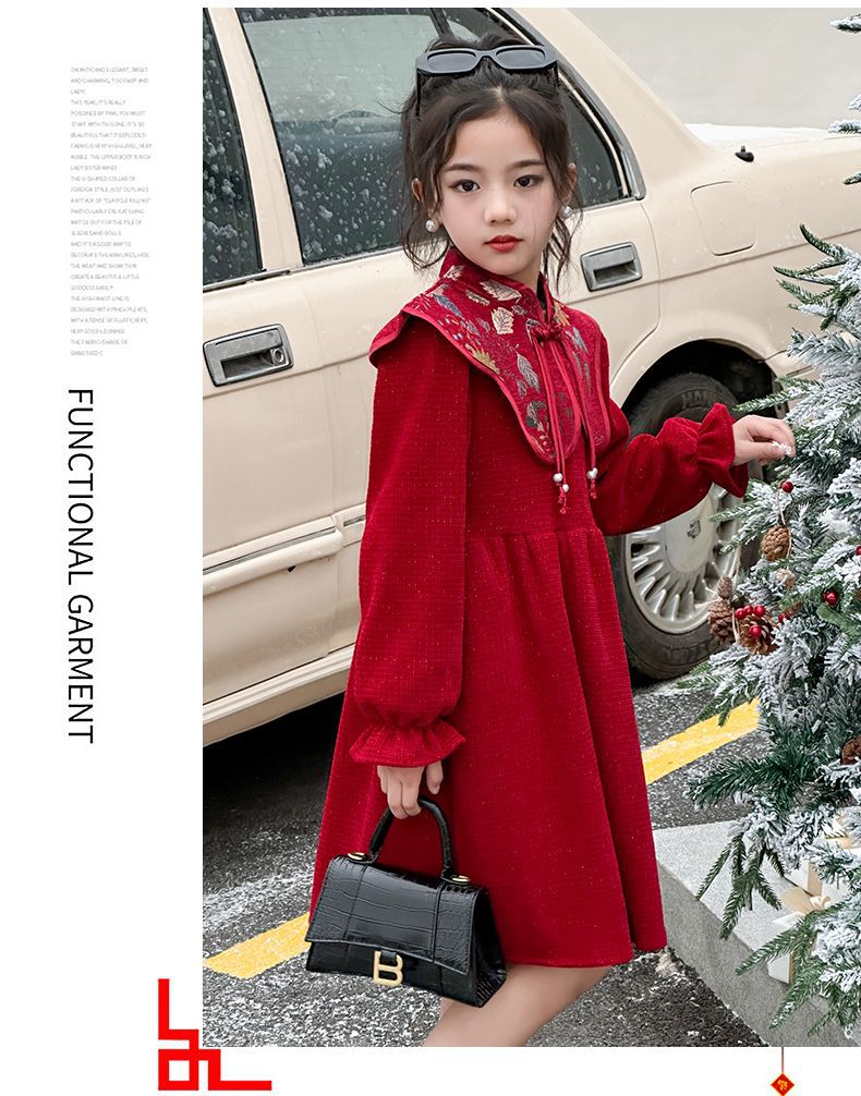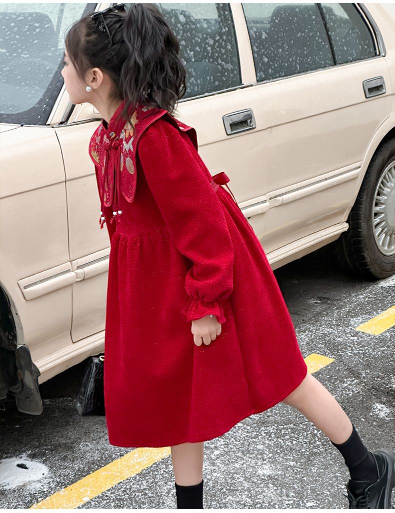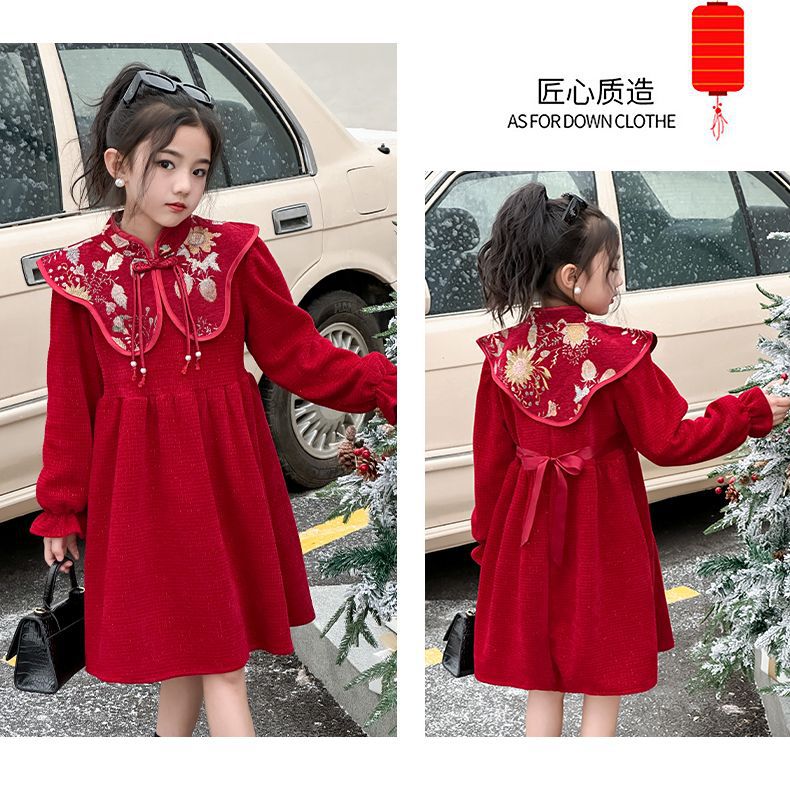 소녀의 새해 원피스 원피스 가을과 겨울 새 스타일 큰 어린이 붉은 축제 소녀 Guofeng 새해 원피스 공주 원피스