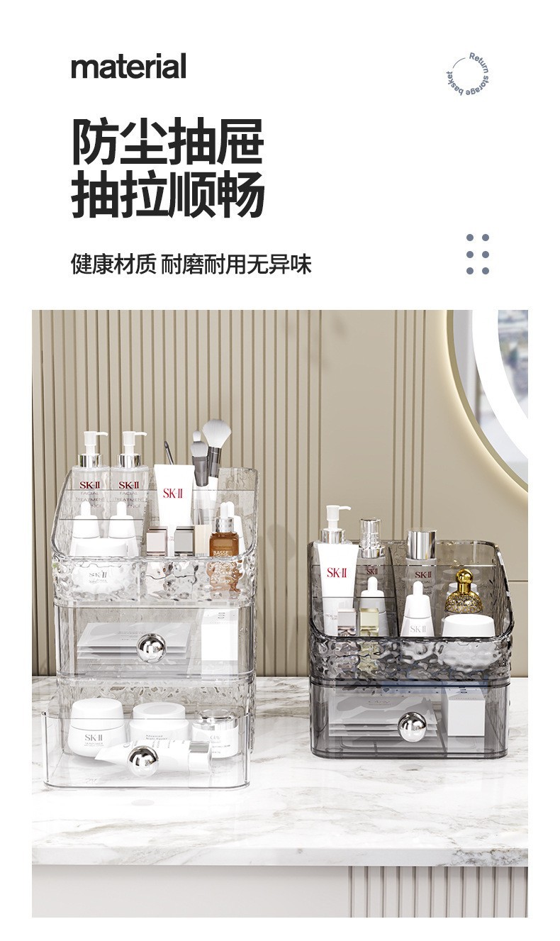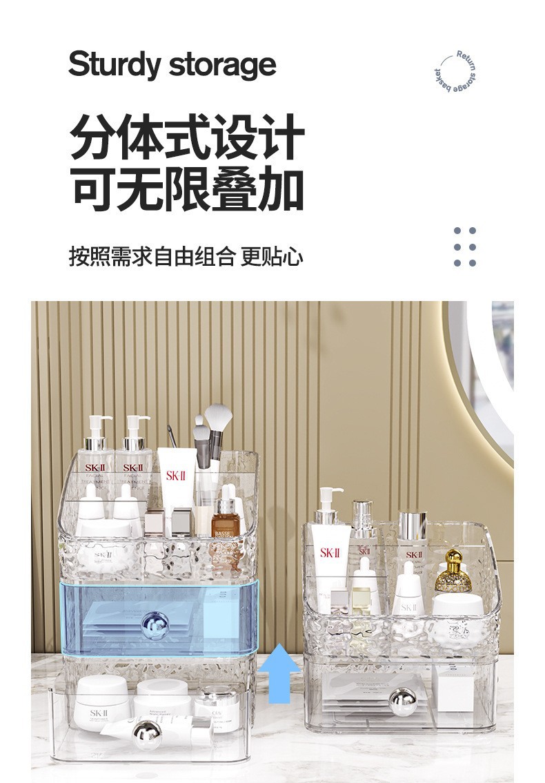 국경 간 빙하 패턴 가벼운 고급 세탁기 보관 랙 욕실 화장실 화장품 높은 투명 카운터 탑 다층 보관 상자스토어 가기