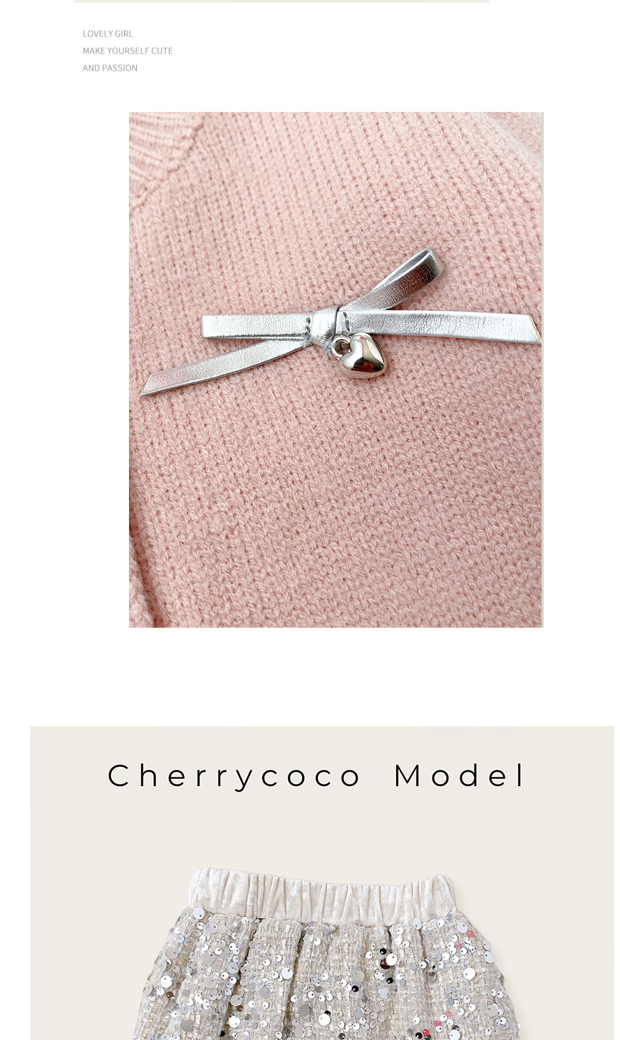 Cherrycoco 새로운 MIU 스타일 세트 소녀 니트 카디건 유행 스팽글 스커트 진주 가방 3 세트스토어 가기