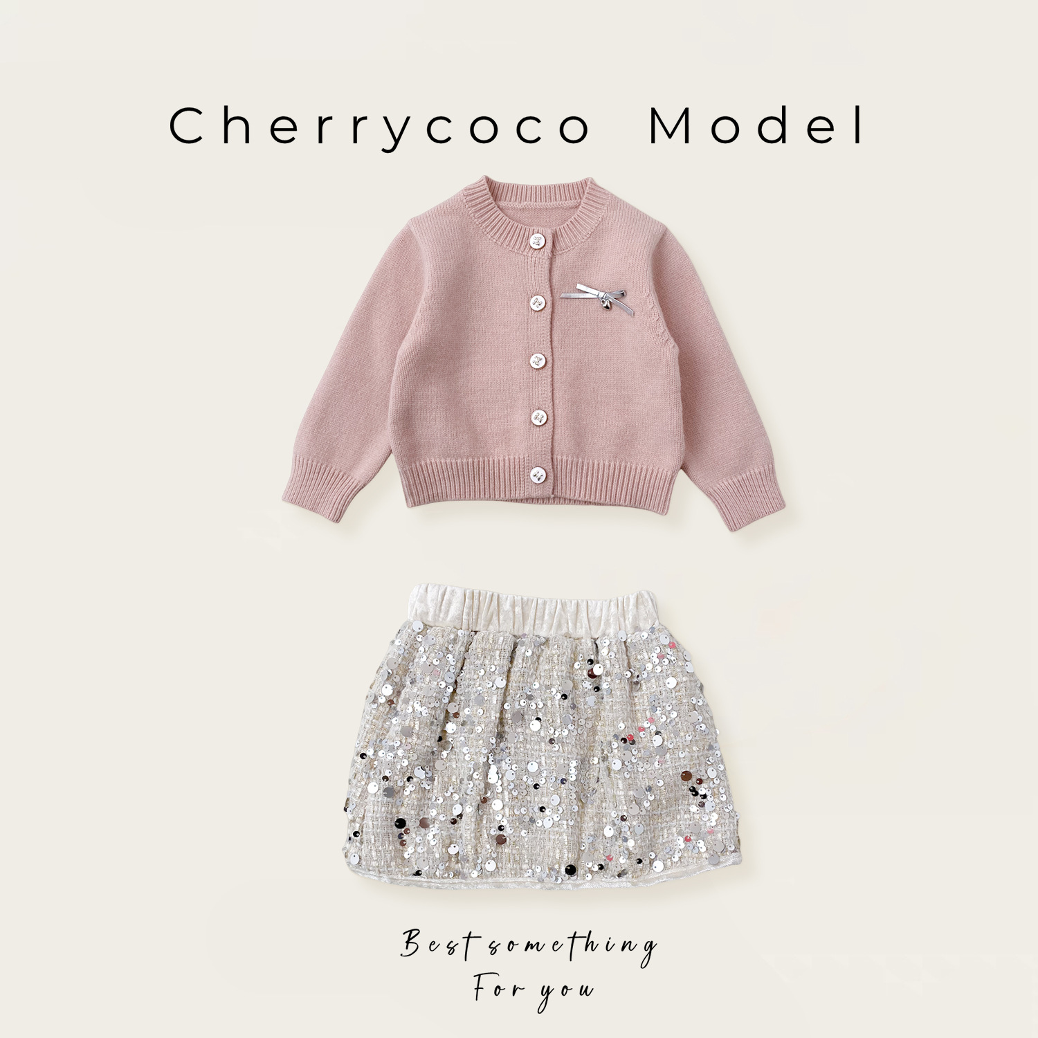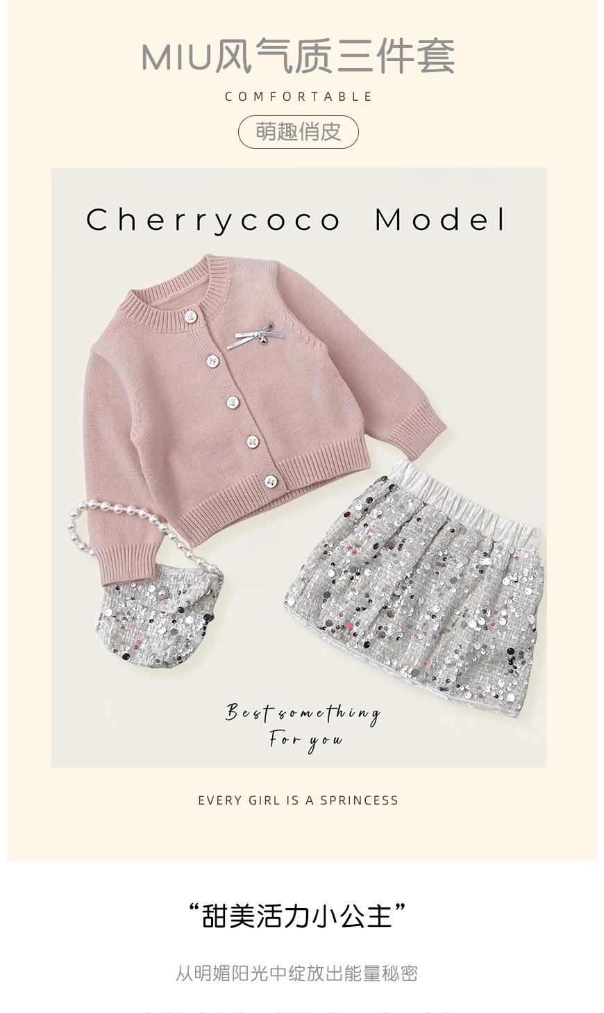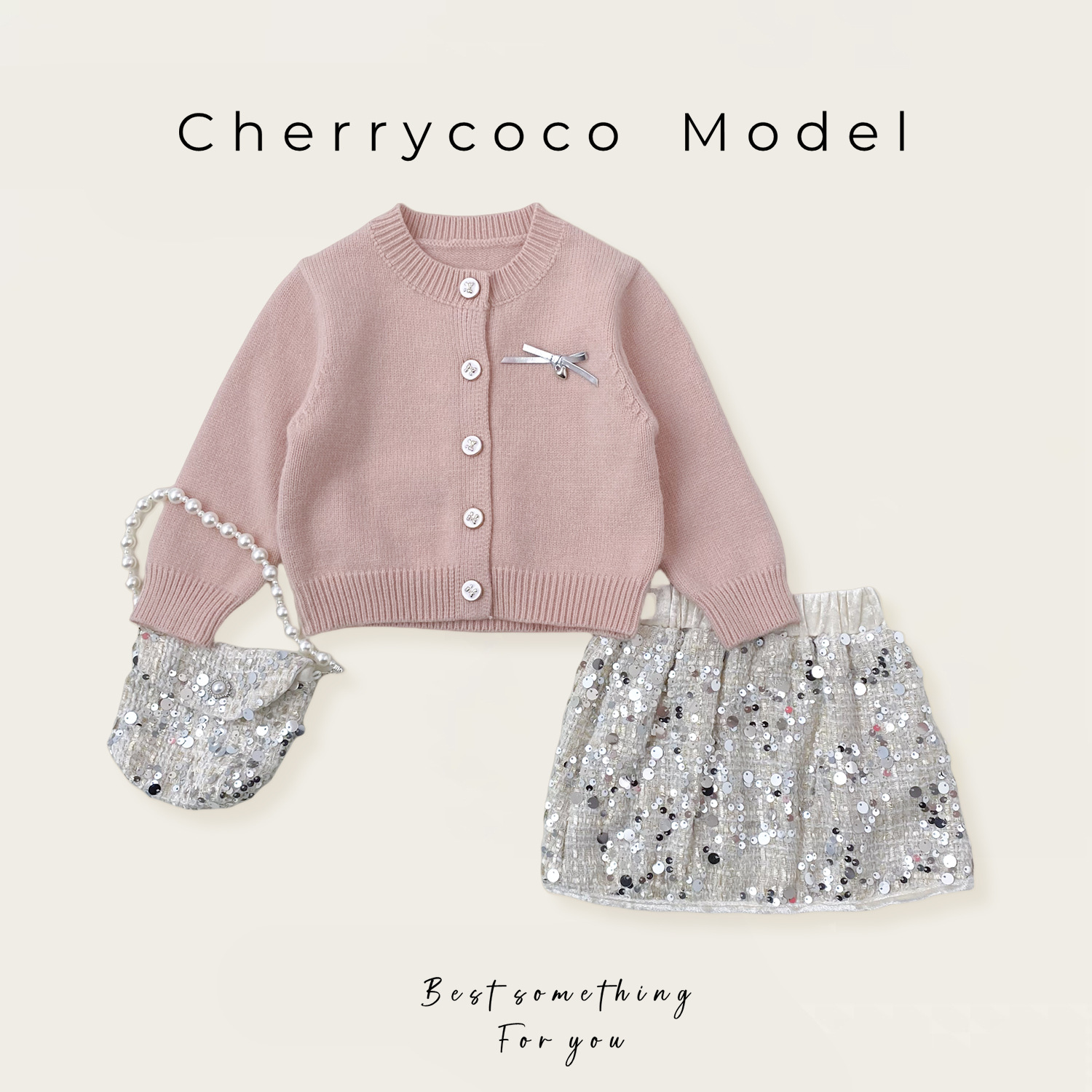 Cherrycoco 새로운 MIU 스타일 세트 소녀 니트 카디건 유행 스팽글 스커트 진주 가방 3 세트