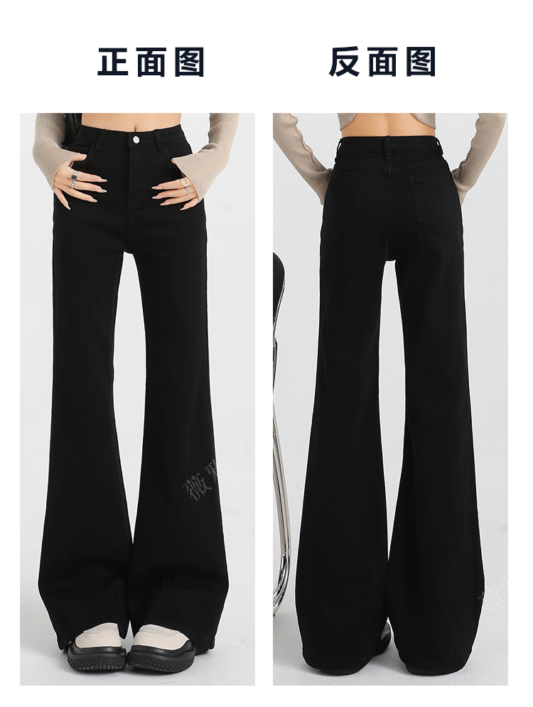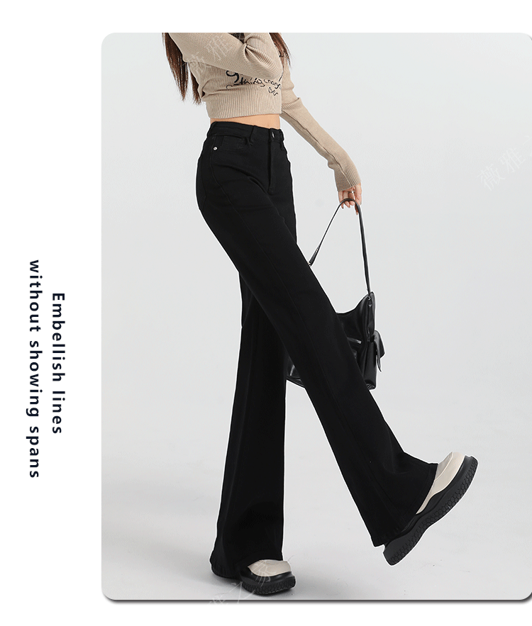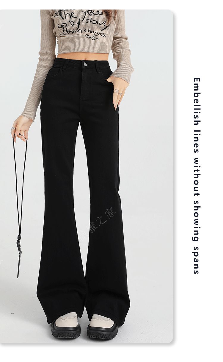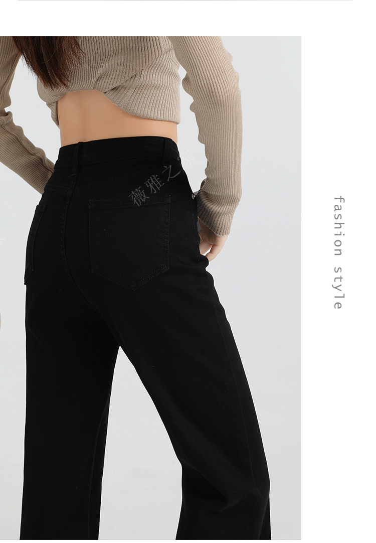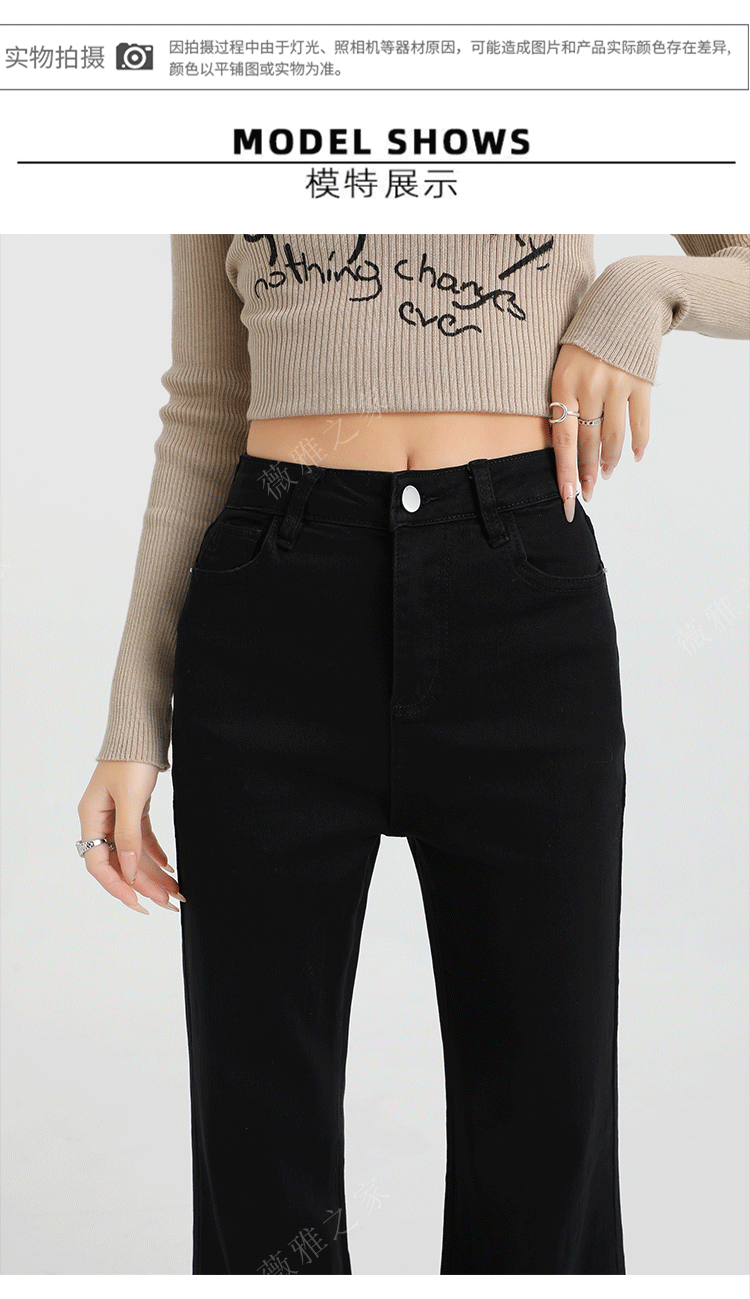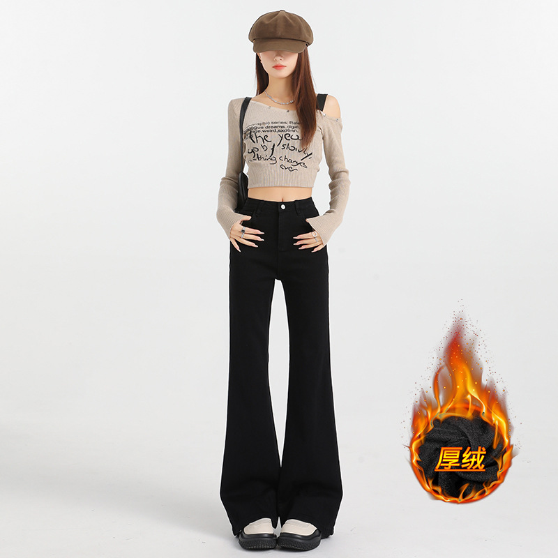 Black Slair Jeans 여성용 기모 두꺼운 겨울 새로운 높은 허리 느슨한 탄성 슬림-맞는 뿔 스트레이트 바지스토어 가기