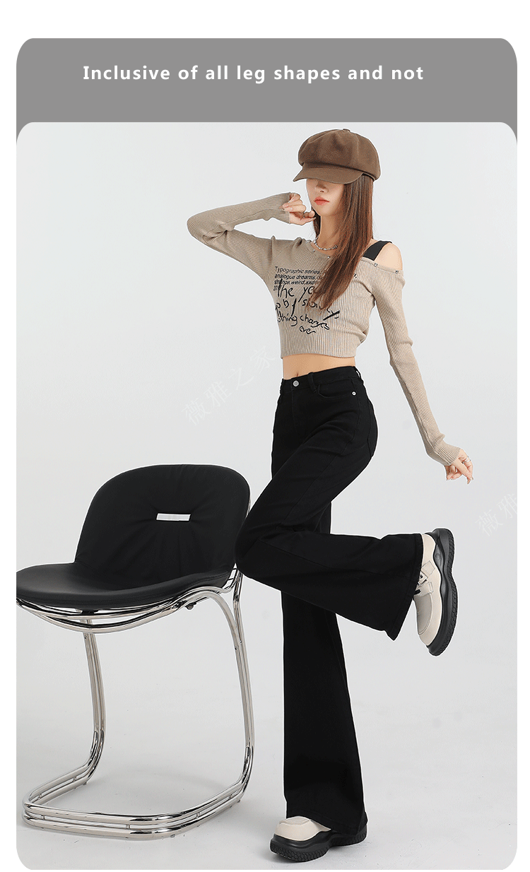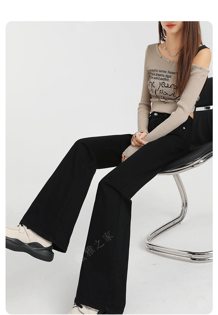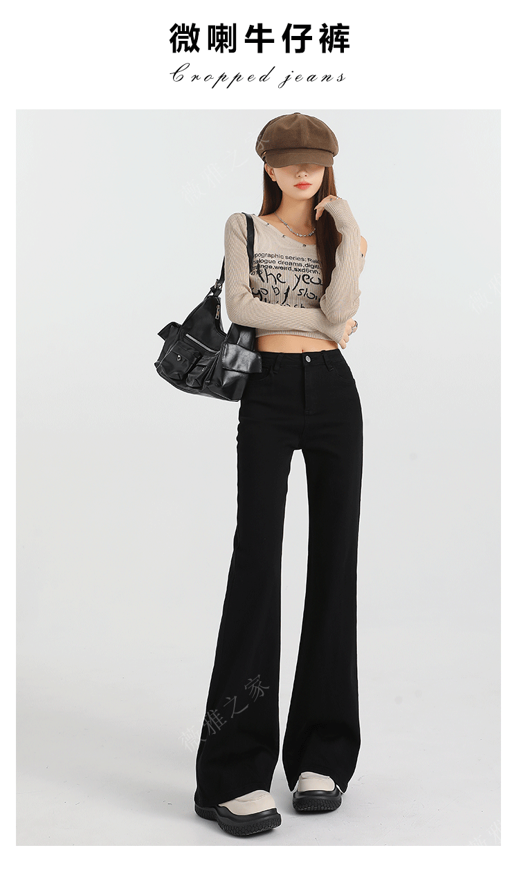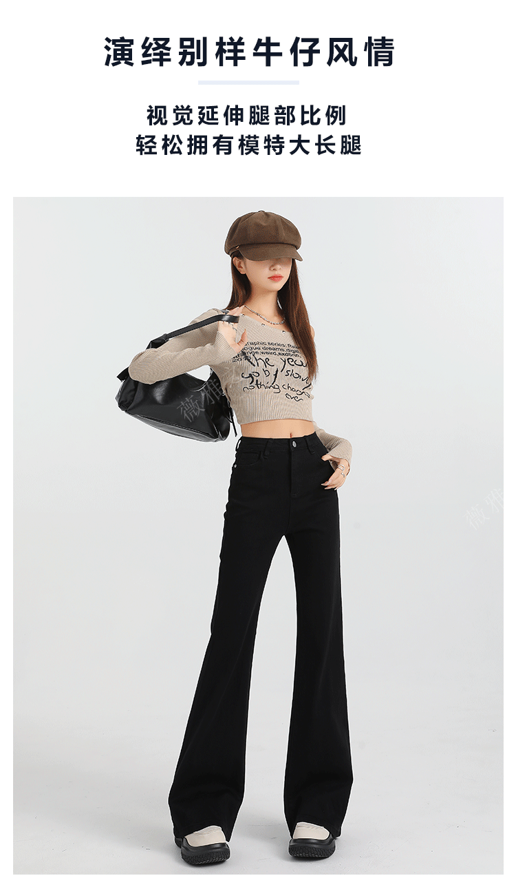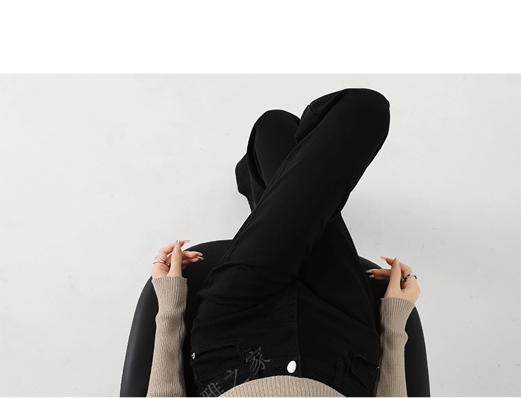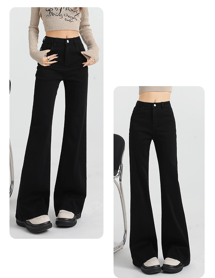 Black Slair Jeans 여성용 기모 두꺼운 겨울 새로운 높은 허리 느슨한 탄성 슬림-맞는 뿔 스트레이트 바지스토어 가기
