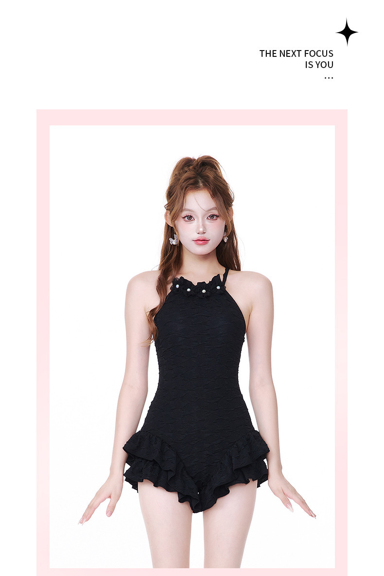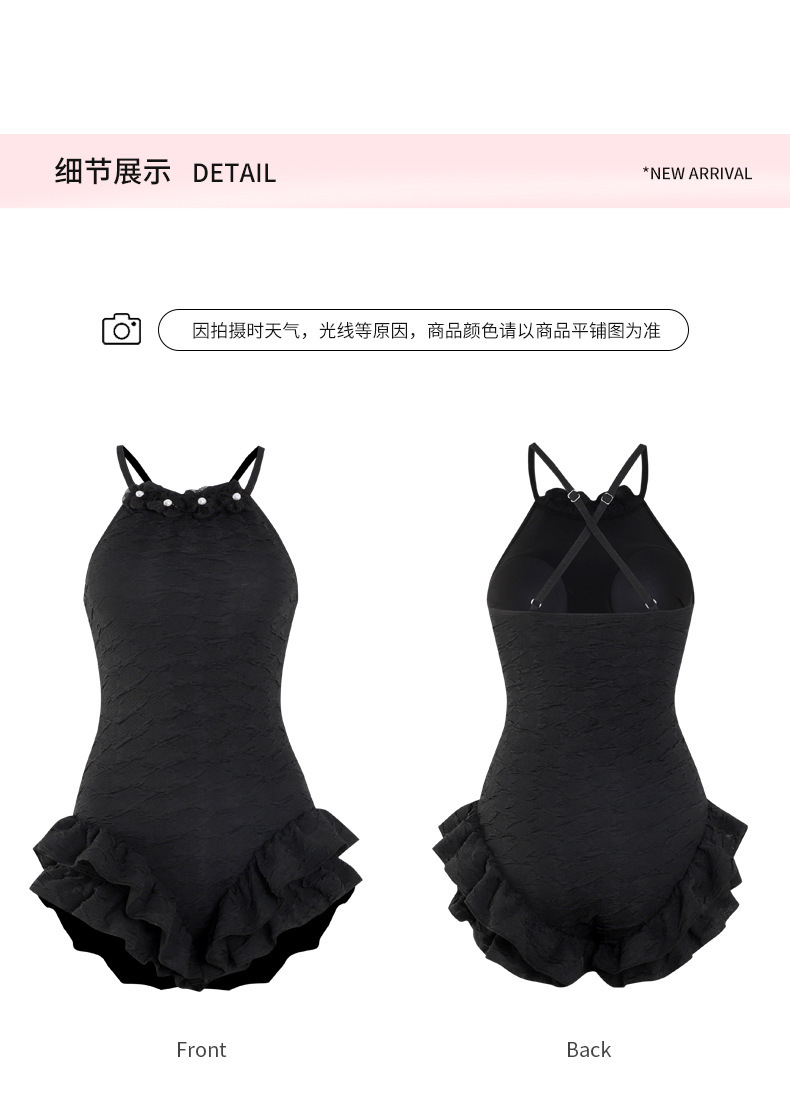 2024 신상 원피스 솔리드 컬러 수영복, 보수적인 끈 디자인, 슬림한 핏, 배를 가려주는 일본풍 귀여운 달콤한 소녀 스타일, 작은 가슴을 위한 수영복