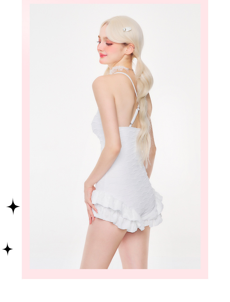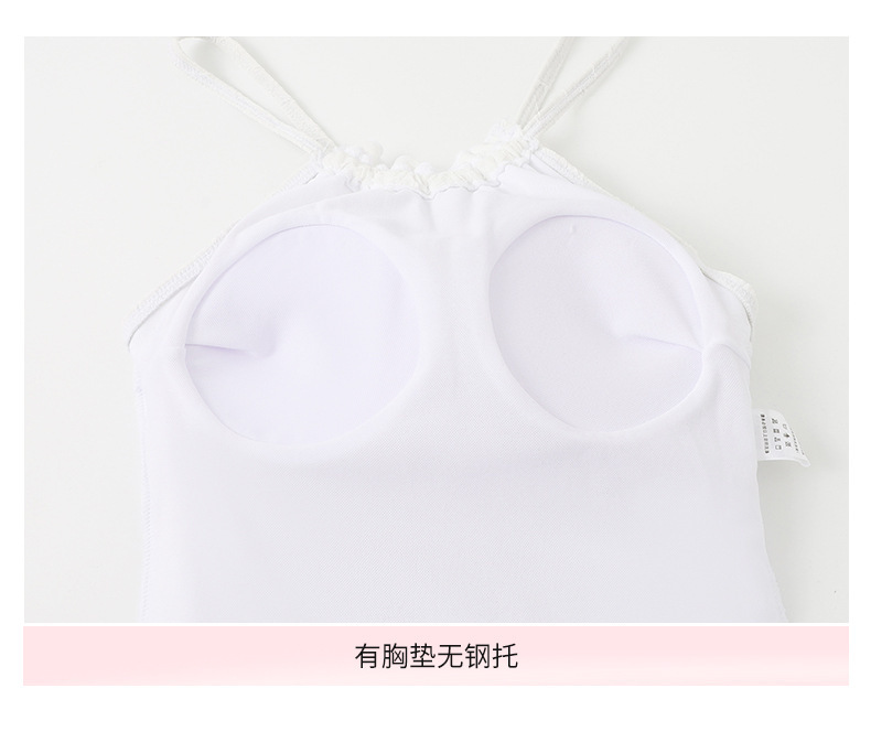 连体白色泳衣女款保守吊带平角显瘦遮肚日系可爱小胸泳装2024新款