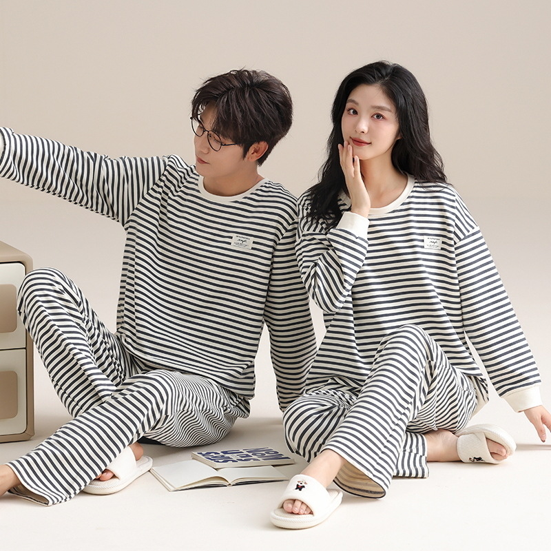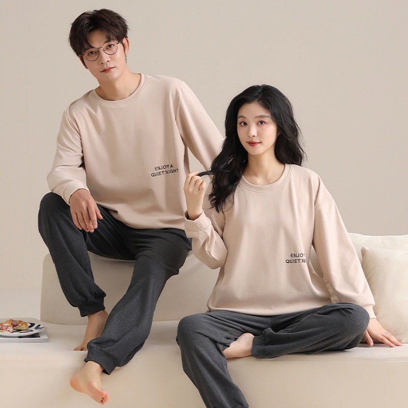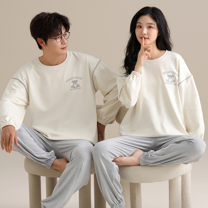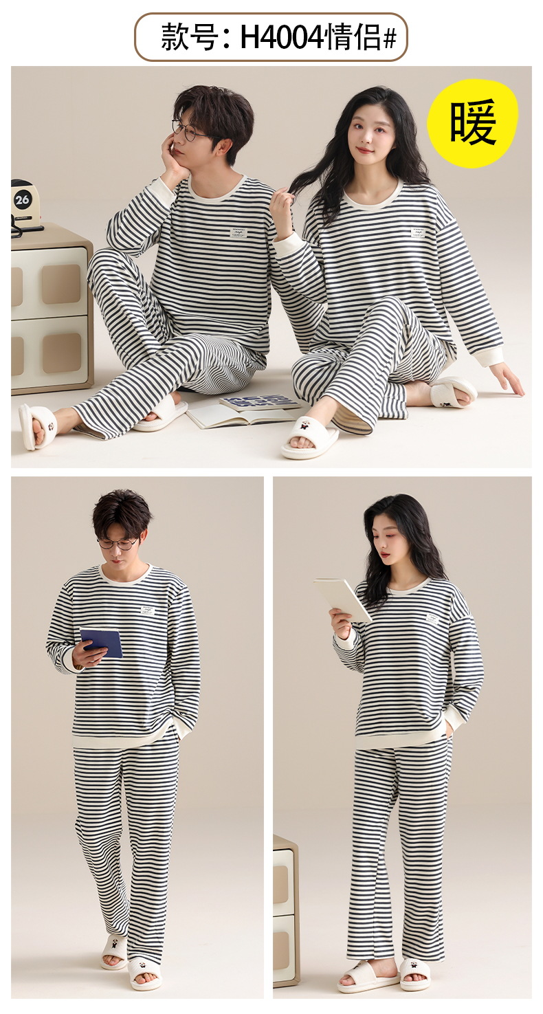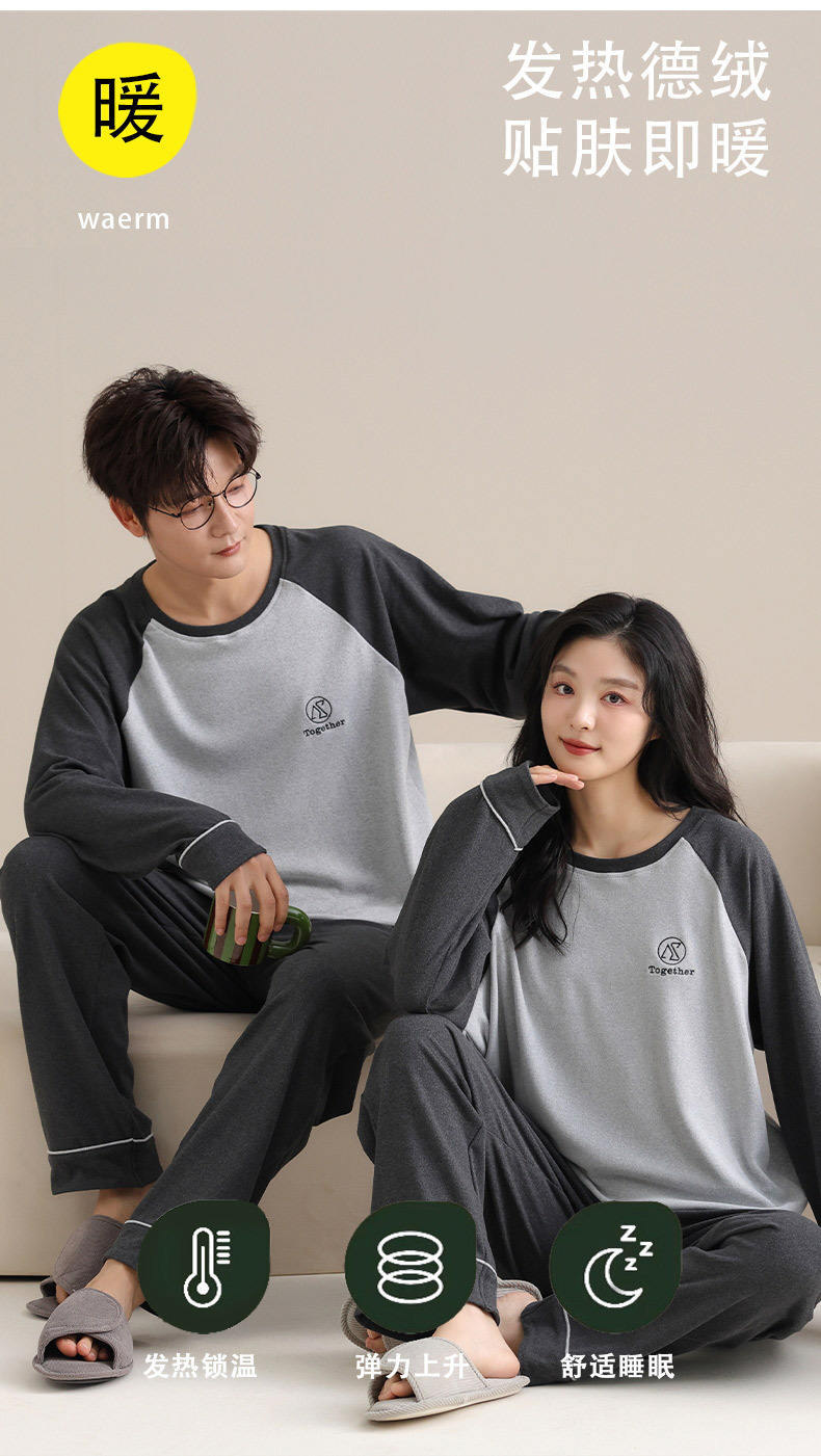 독일 벨벳 커플 잠옷 여성의 봄과 가을 긴 소매 따뜻한 2024 새로운 만화 간단한 남성 가을과 겨울 집 옷스토어 가기