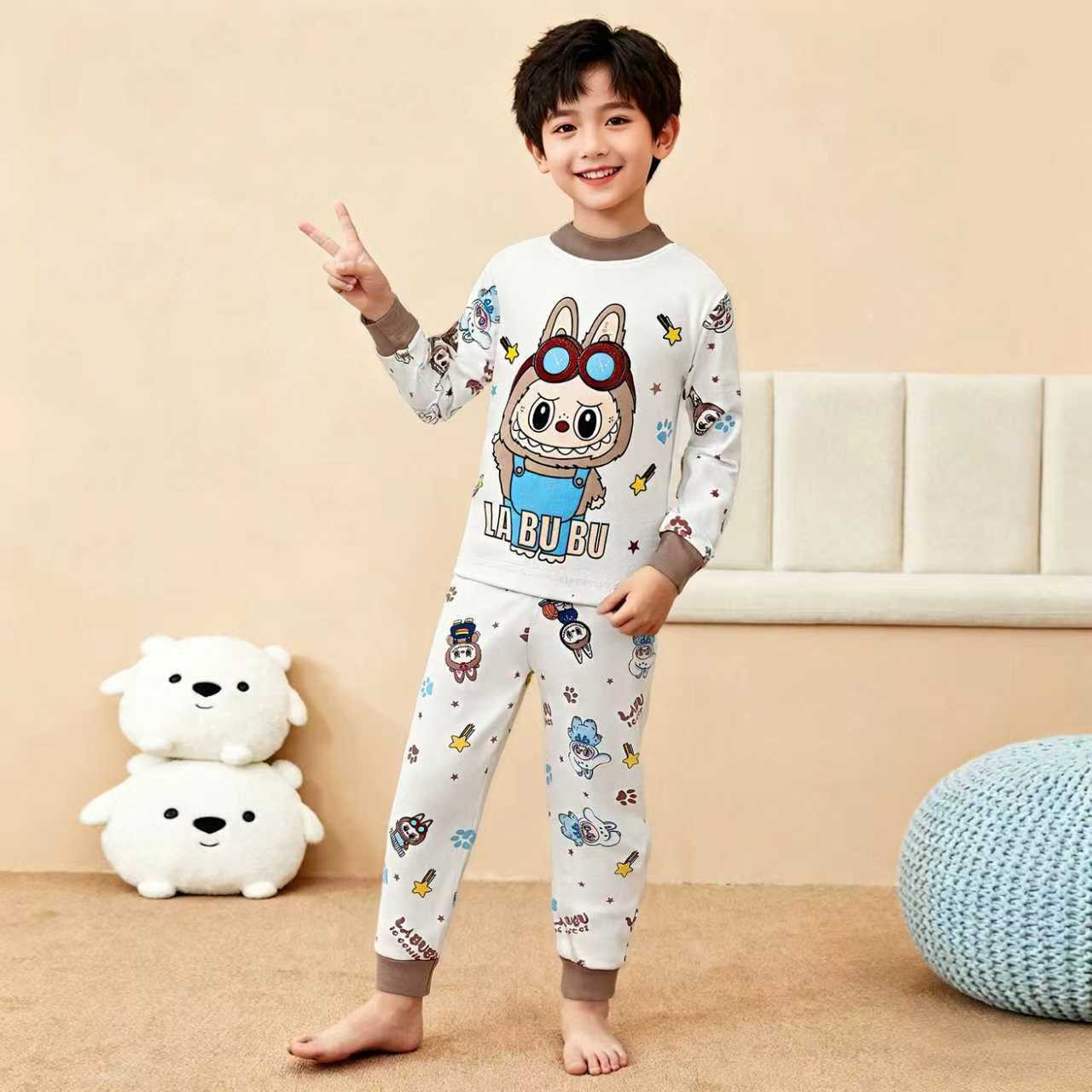 어린이 잠옷 소년 소녀 가을 옷과 바지 세트 아기 열 속옷 중간 및 큰 어린이 벨벳 통기성 홈 옷스토어 가기