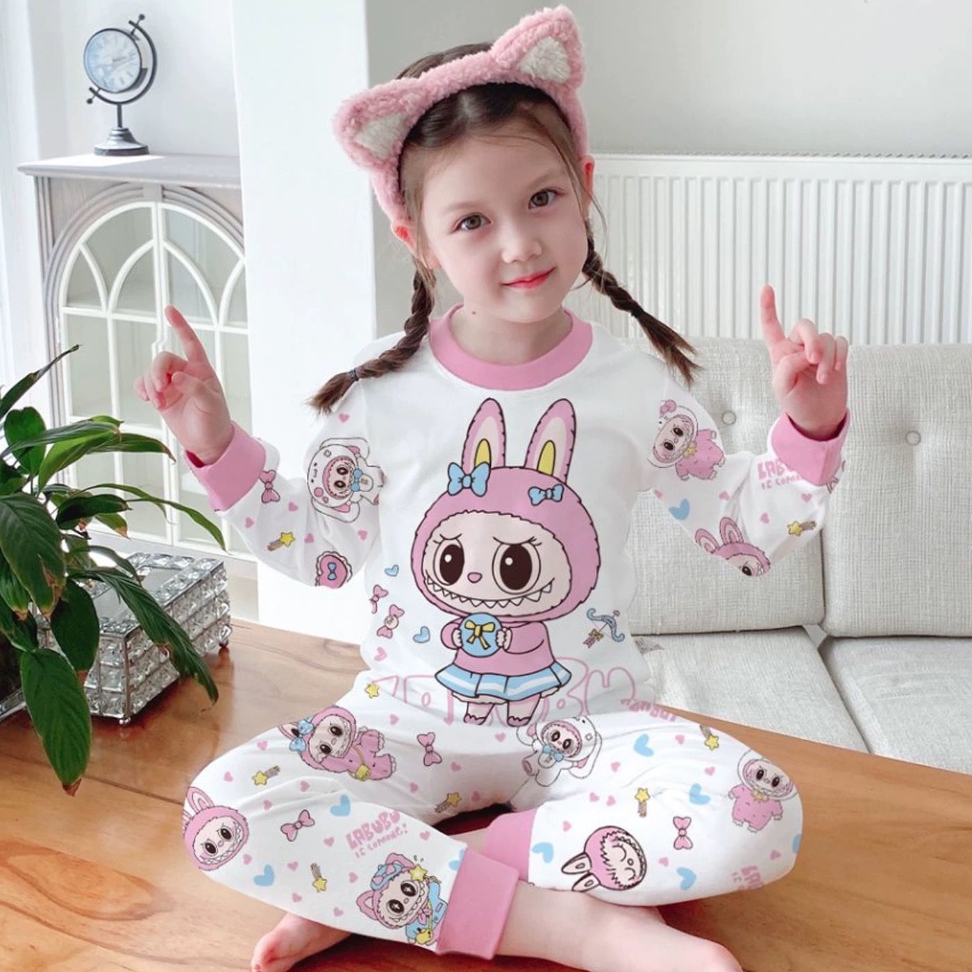어린이 잠옷 소년 소녀 가을 옷과 바지 세트 아기 열 속옷 중간 및 큰 어린이 벨벳 통기성 홈 옷