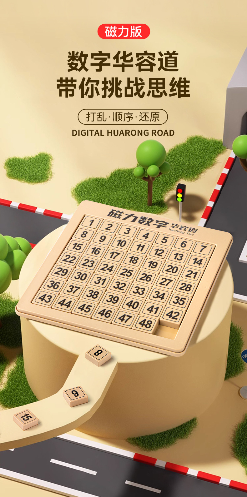 마그네틱 에디션 디지털 삼국지 Huarong 도로 어린이 사고 훈련 교육 장난감 도매 어린이 통관 게임 퍼즐스토어 가기