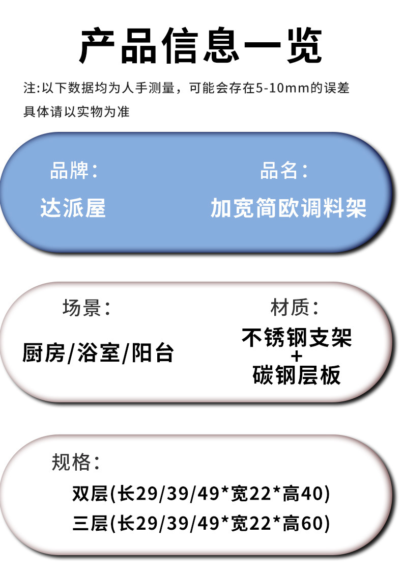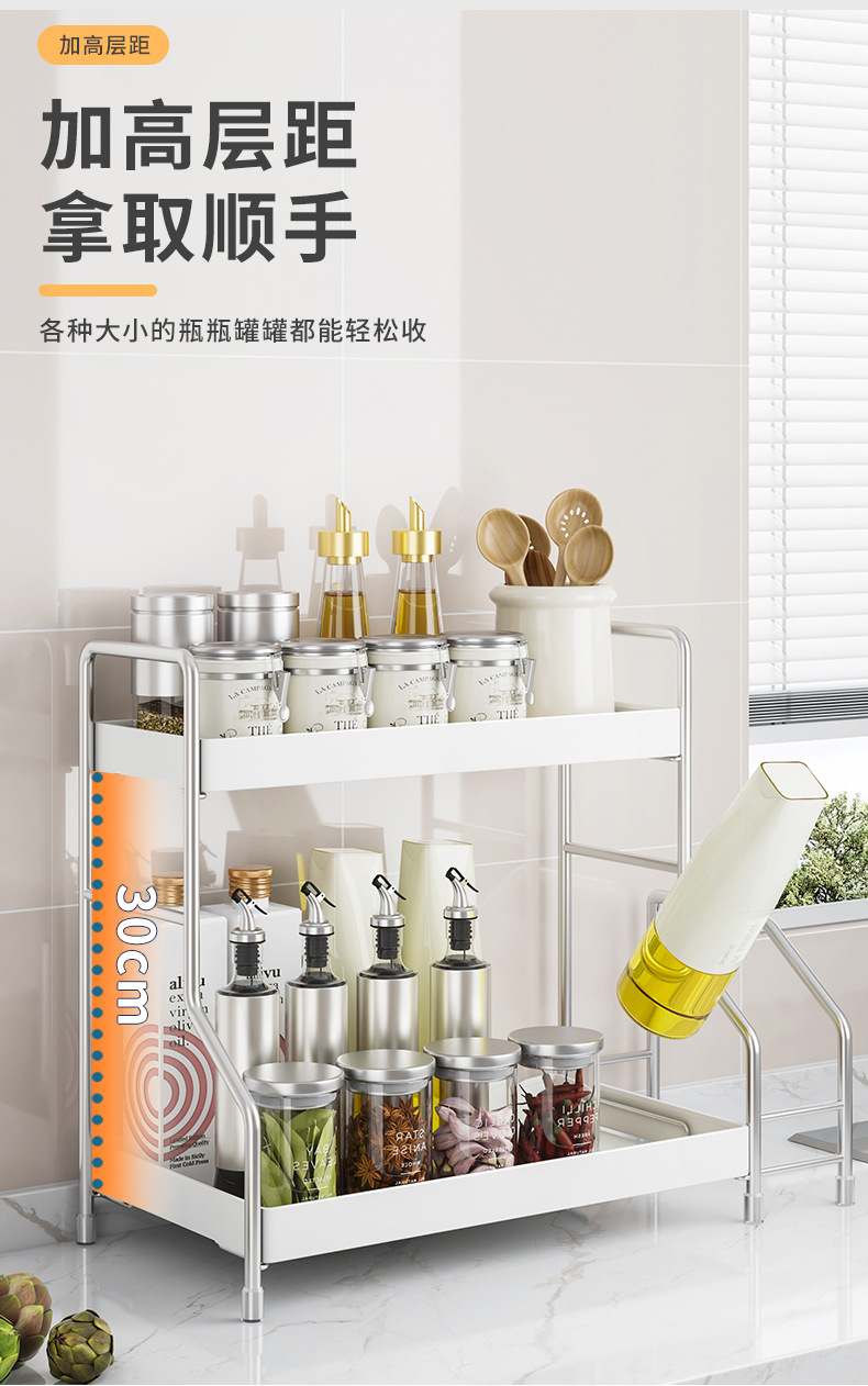 크림 스타일 스테인레스 스틸 주방 양념 랙 가정용 조미료 보관 랙 다기능 오일 소금 소스 식초 병 보관 랙