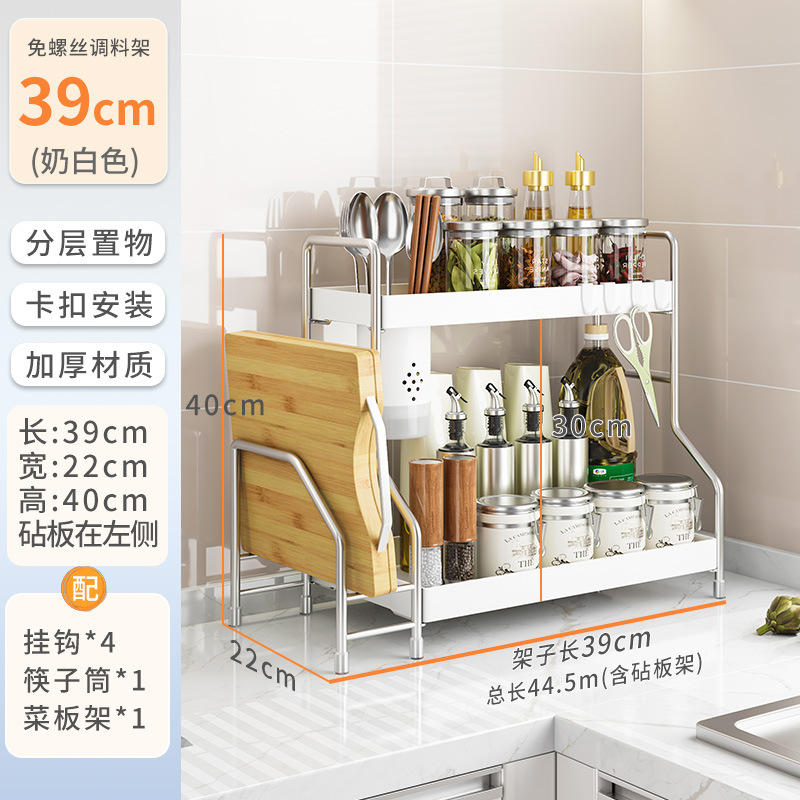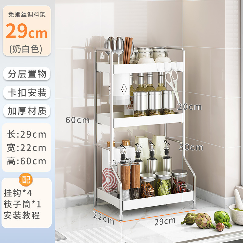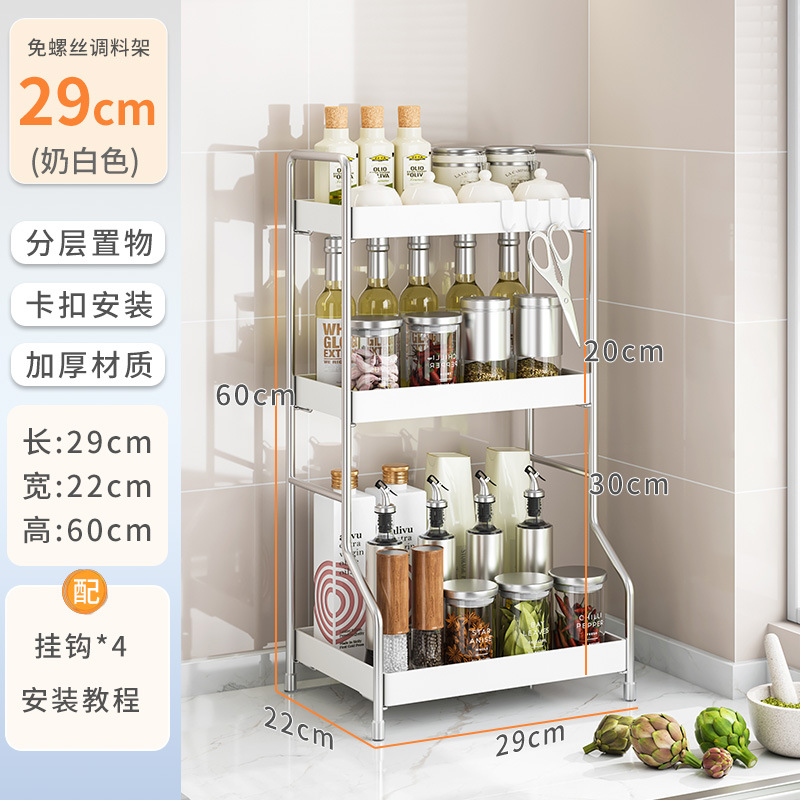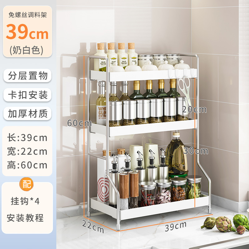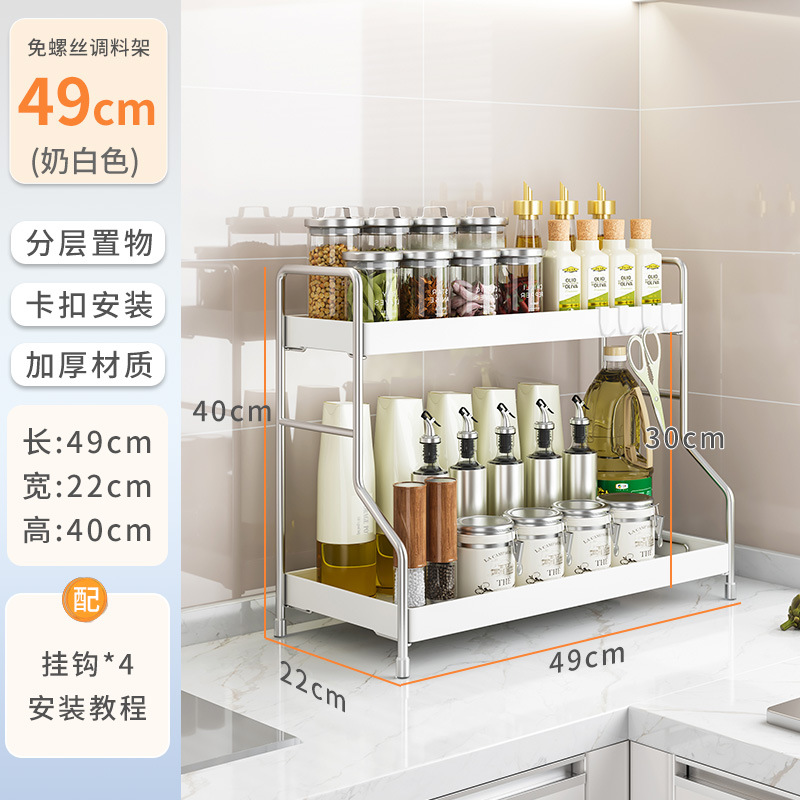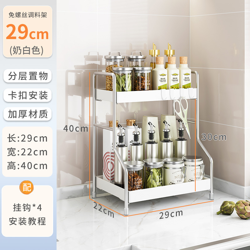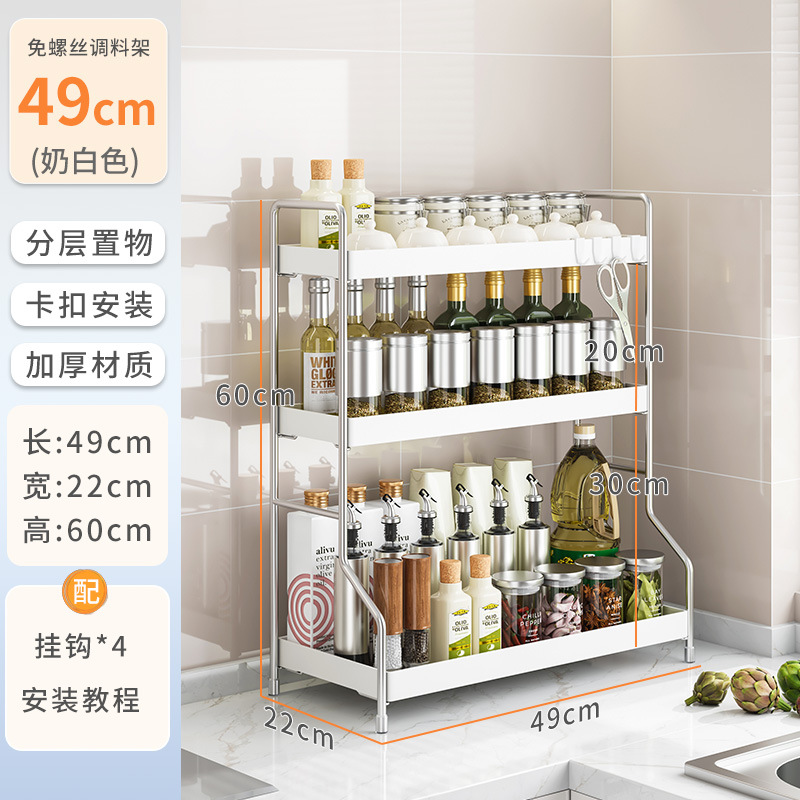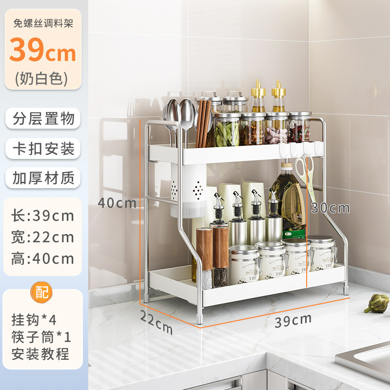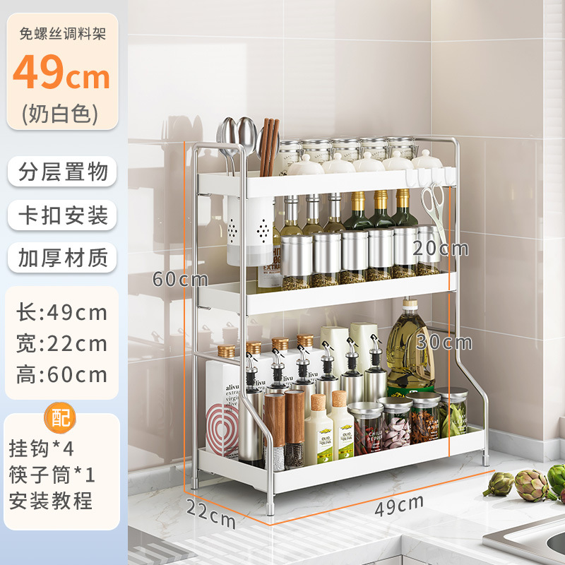 크림 스타일 스테인레스 스틸 주방 양념 랙 가정용 조미료 보관 랙 다기능 오일 소금 소스 식초 병 보관 랙스토어 가기