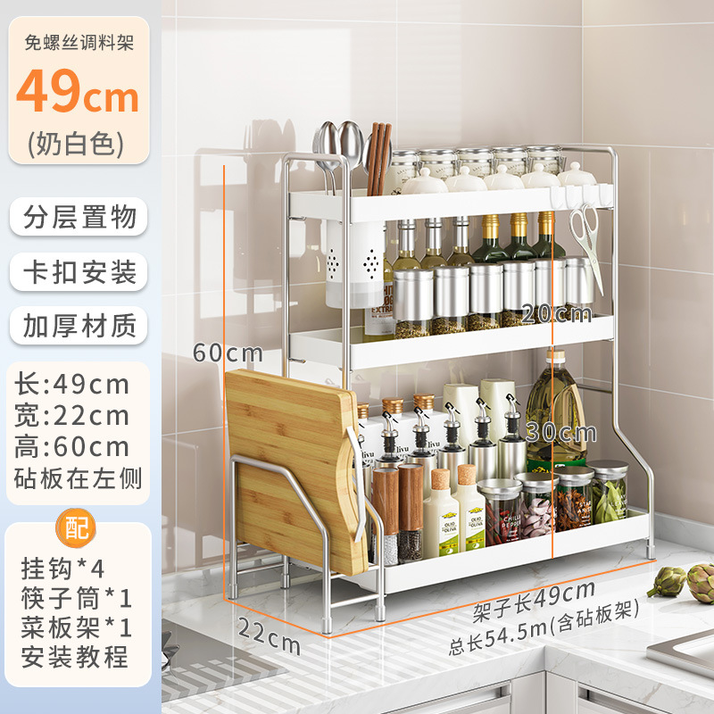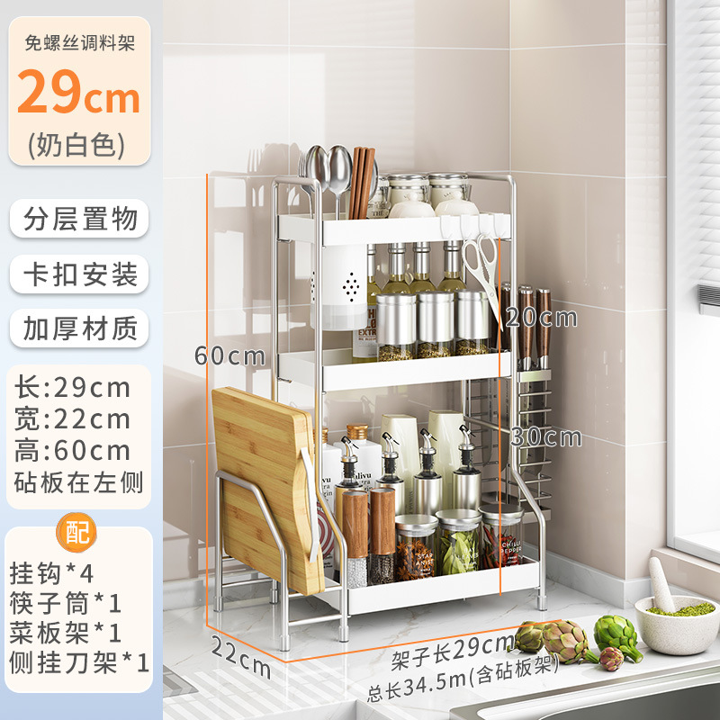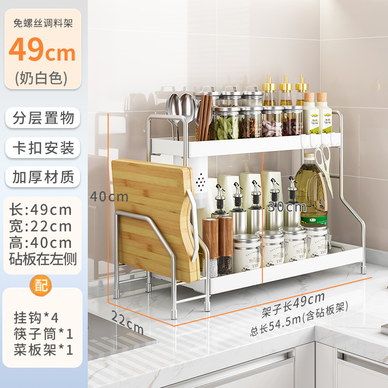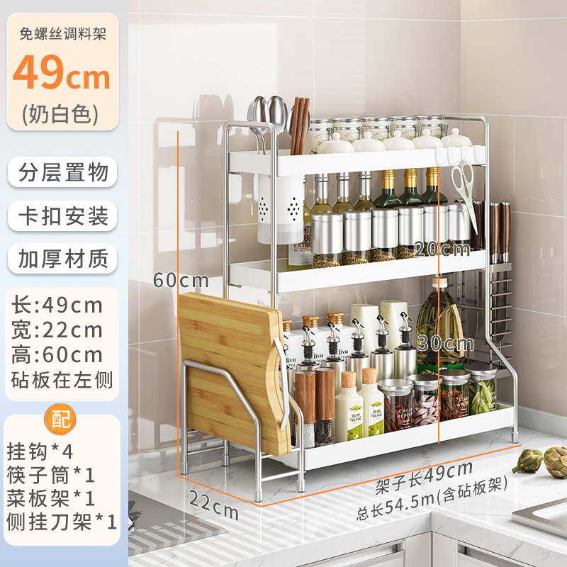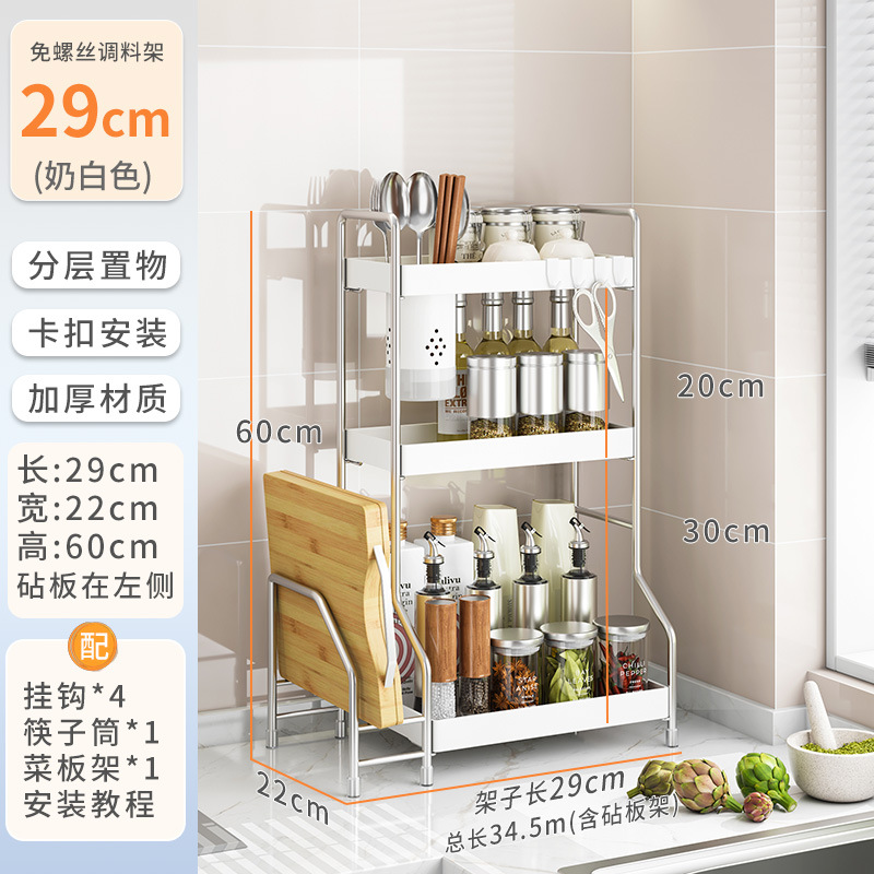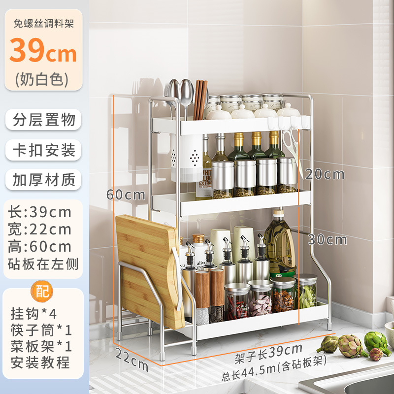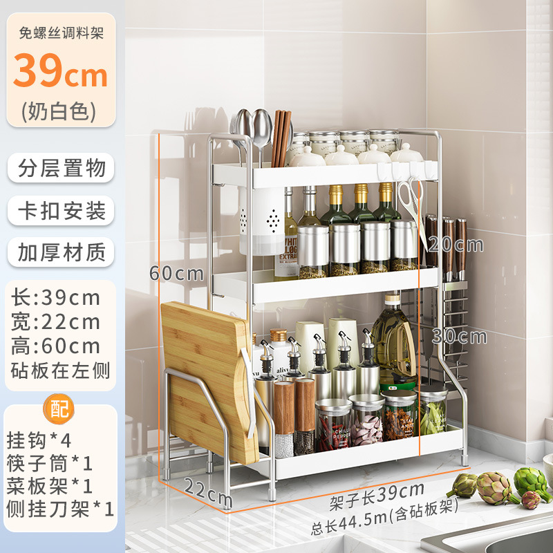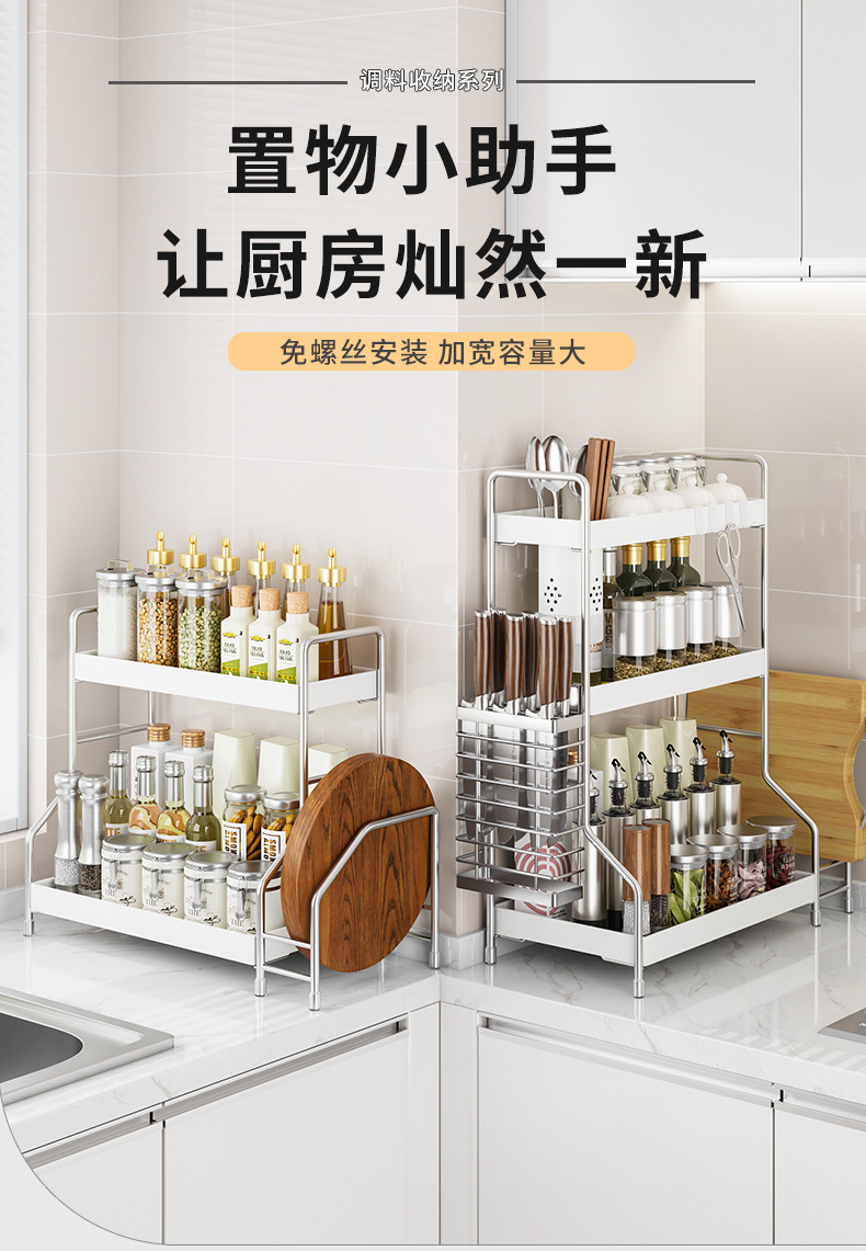 크림 스타일 스테인레스 스틸 주방 양념 랙 가정용 조미료 보관 랙 다기능 오일 소금 소스 식초 병 보관 랙스토어 가기
