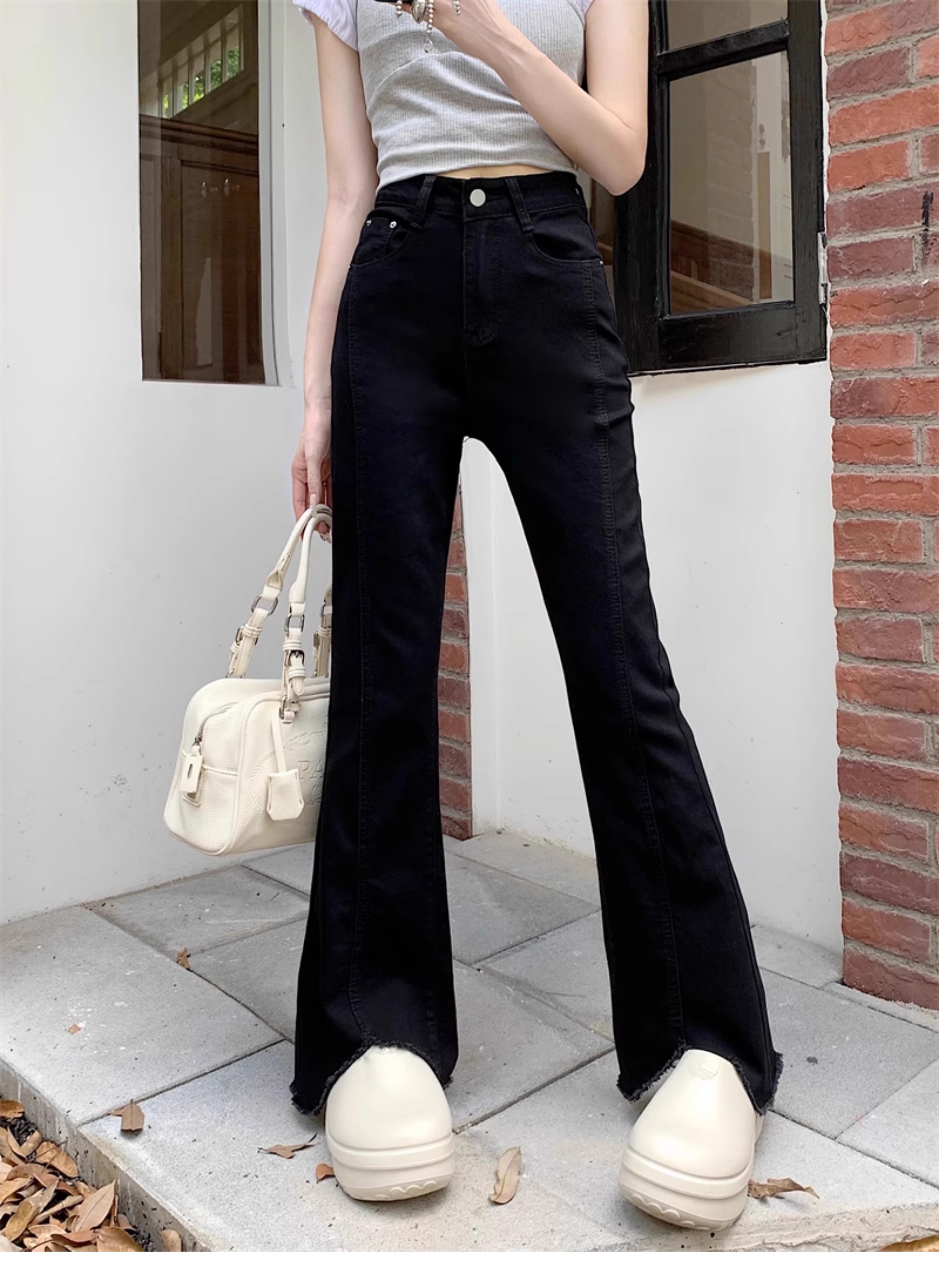 여성용 마이크로 플레어 청바지 2025 신상 가을 겨울 플러스 사이즈 레트로 하이웨이스트 슬리밍 플레어 팬츠스토어 가기