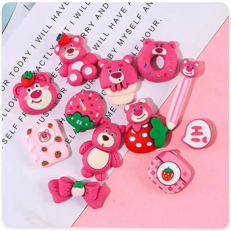시뮬레이션 만화 귀여운 딸기 곰 활 카메라 연필 크림 접착제 diy 소재 휴대 전화 케이스 수지 일치스토어 가기