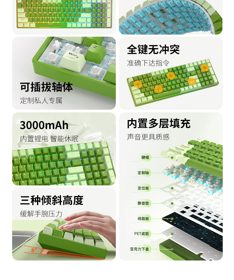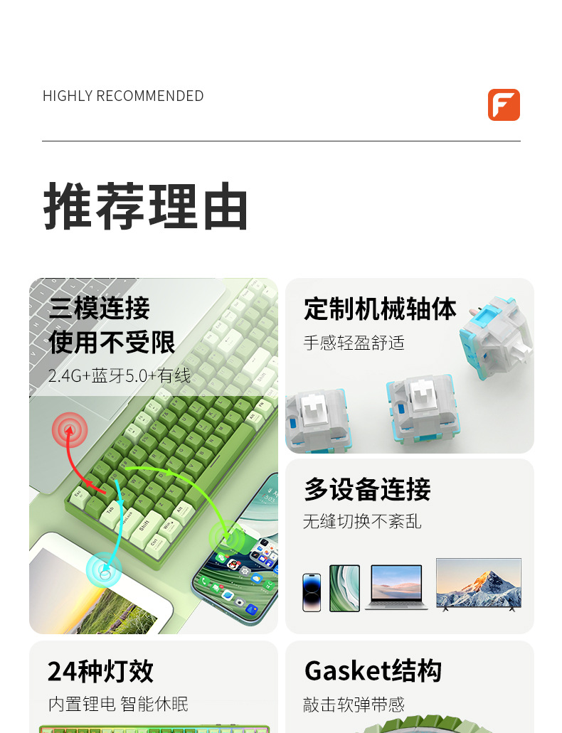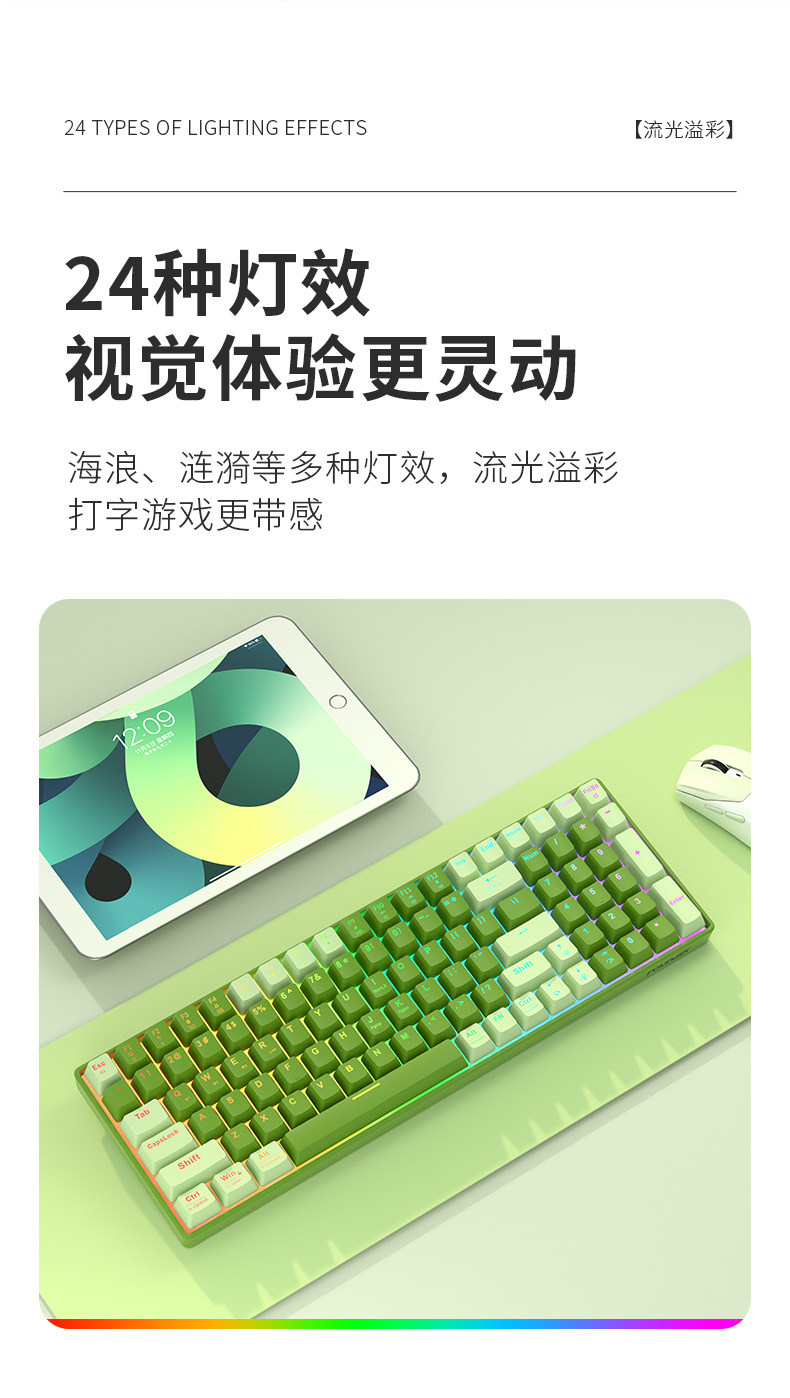 오피스 게임 및 e-스포츠 전용 혼합 컬러 기계식 키보드를 위한 맞춤형 핫스왑 기능을 갖춘 방정 무선 Bluetooth 3모드스토어 가기