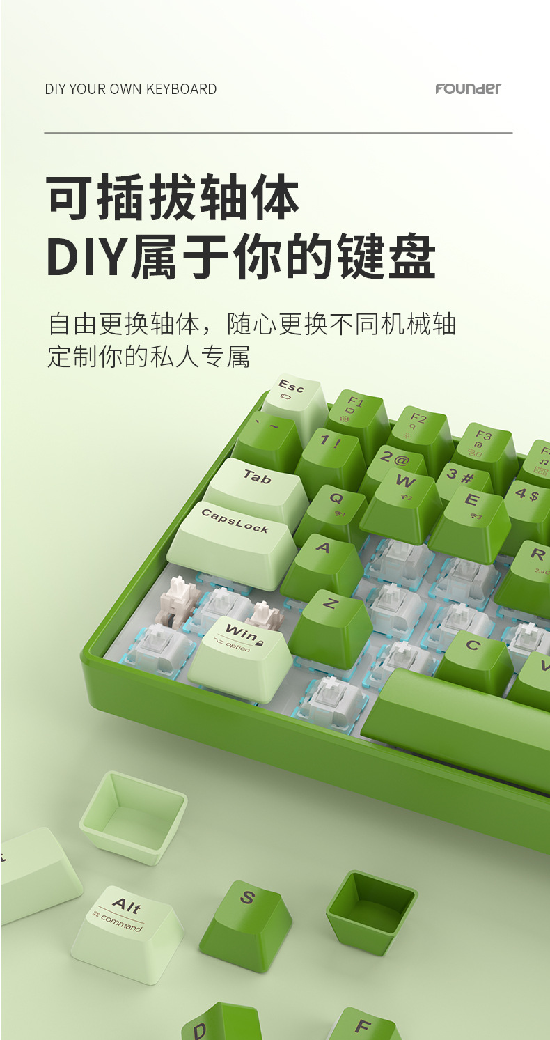 오피스 게임 및 e-스포츠 전용 혼합 컬러 기계식 키보드를 위한 맞춤형 핫스왑 기능을 갖춘 방정 무선 Bluetooth 3모드