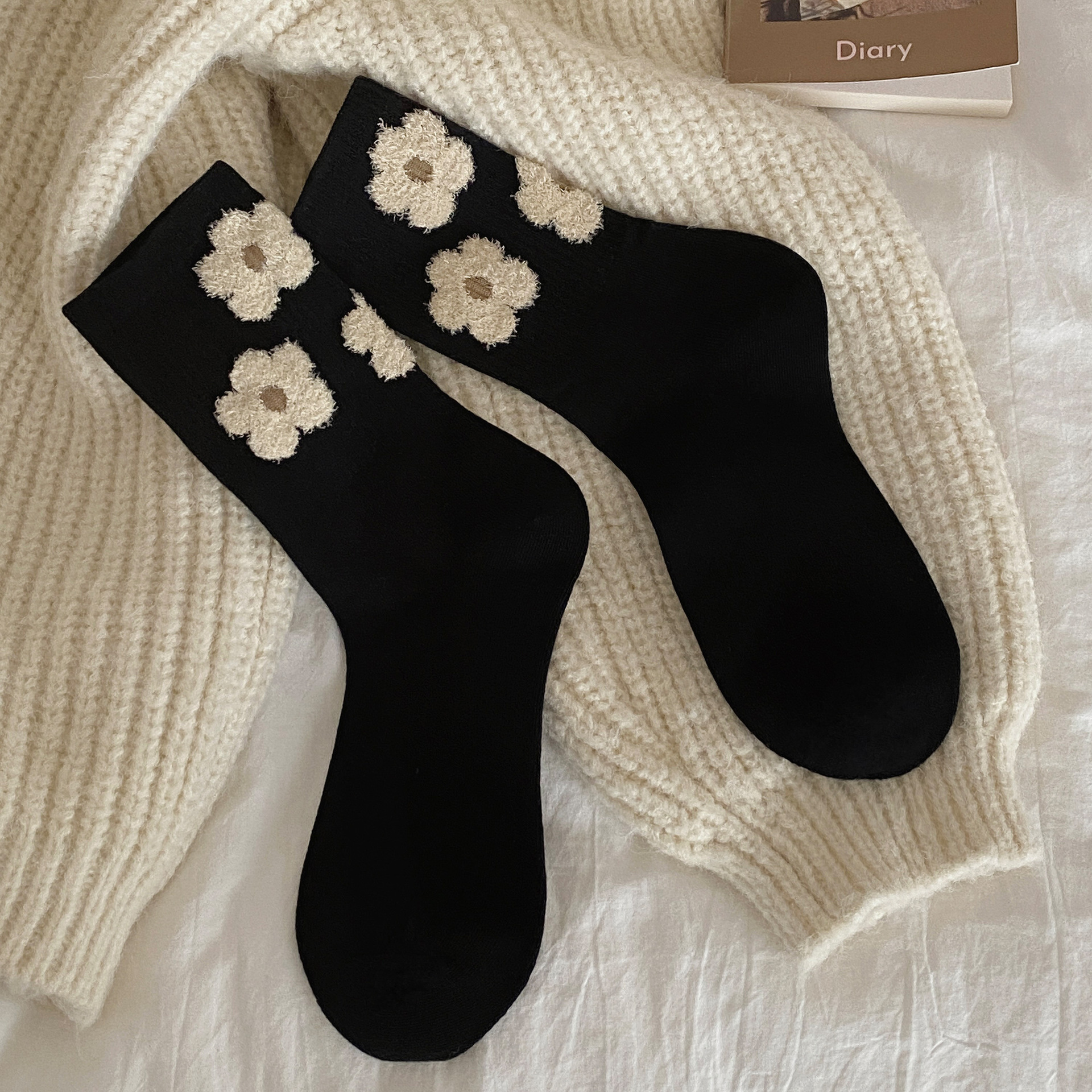가을과 겨울 웃는 깃털 여성 양말 따뜻한 중간 높이 꽃 온라인 연예인 라이브 고급 한국식 실내 올매치 베어스토어 가기