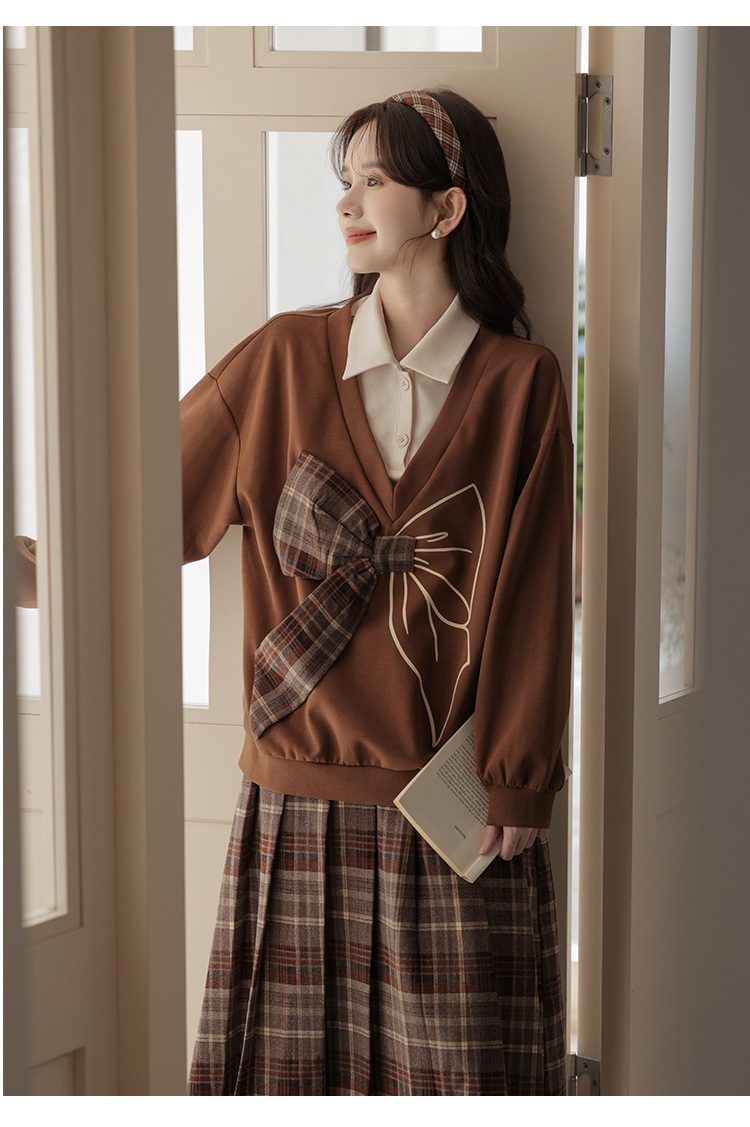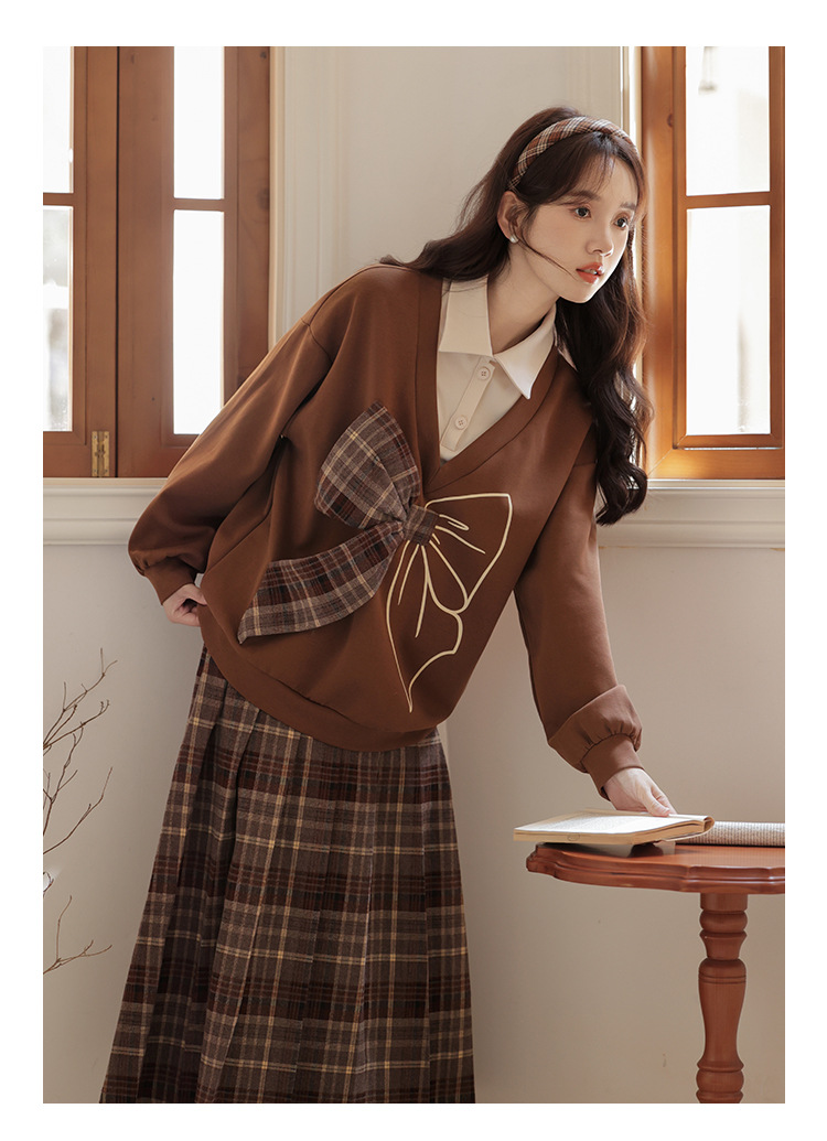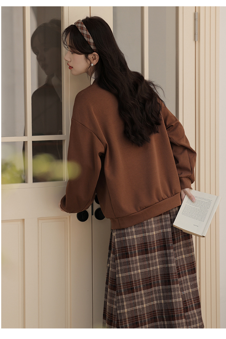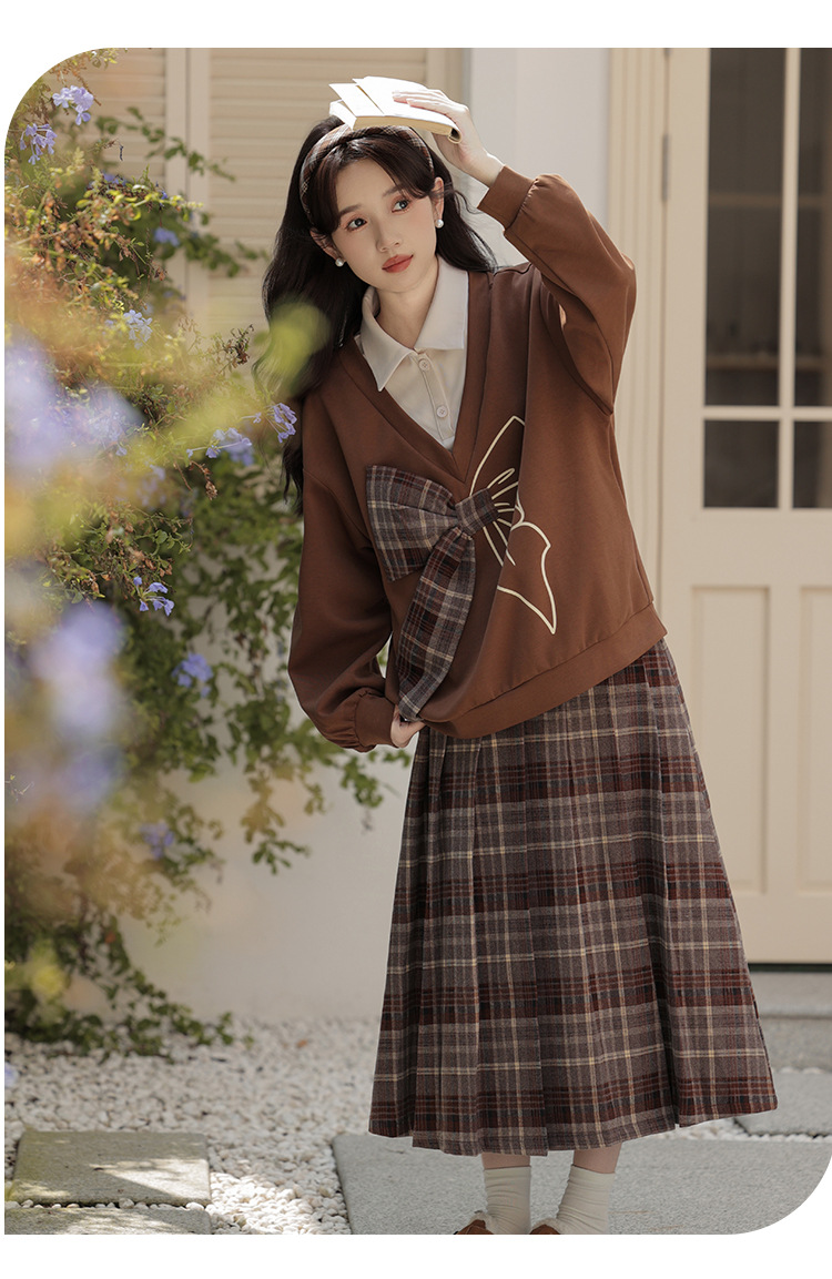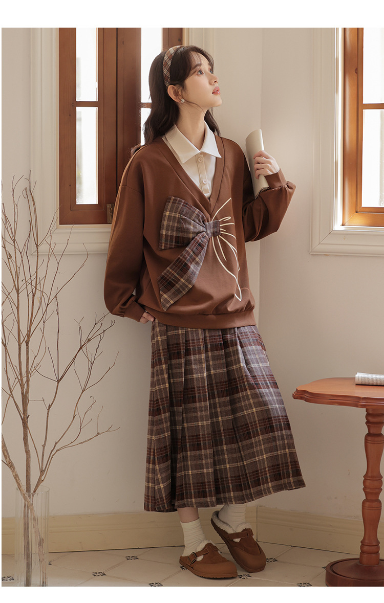 대학 스타일의 한국식 투피스 원피스 세트 여자 2024 년 겨울 새 도착 활 땀 격자 무늬 스커트스토어 가기