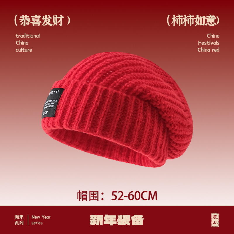 큰 머리 울 모자 어린이 겨울 2024 새로운 일본 스타일 따뜻한 귀 보호 차가운 모자 힙 얼굴 용 작은 니트 모자
