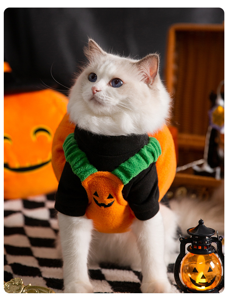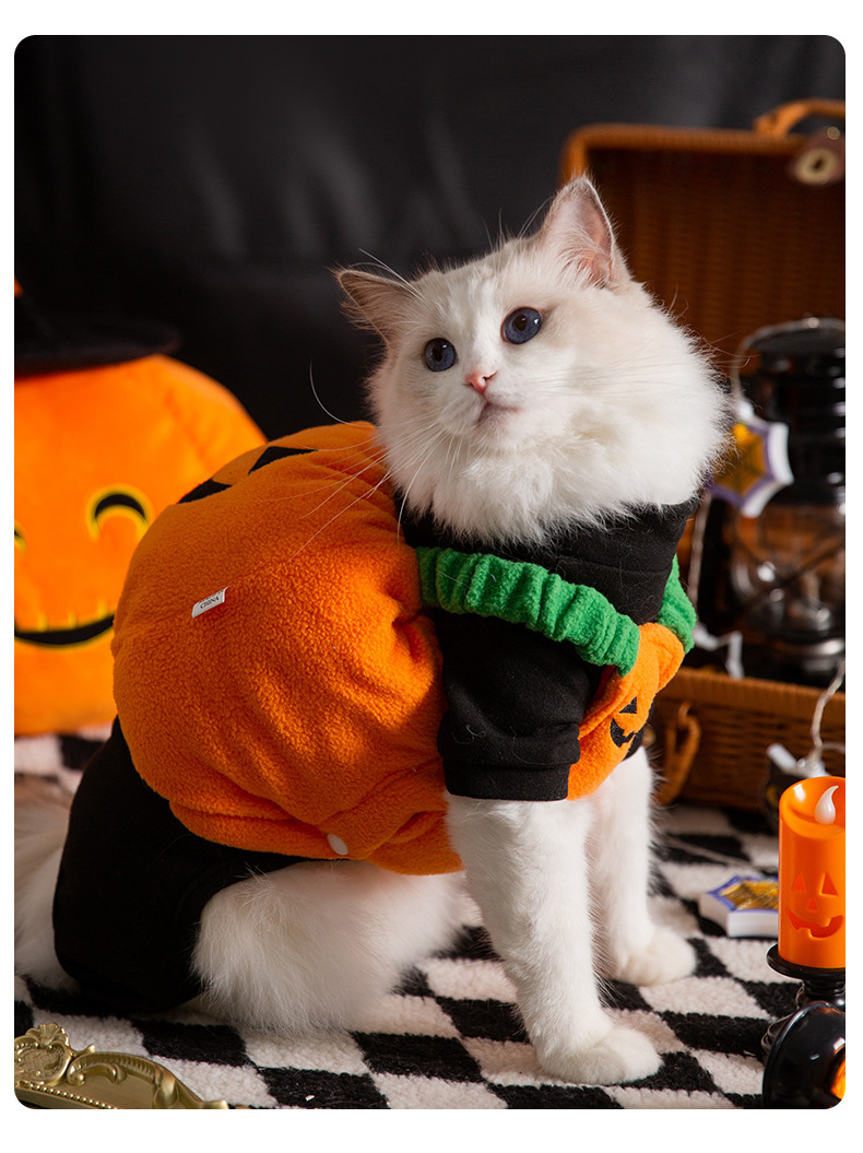 키티 옷 가을 고양이 꼭두각시 고양이 푸른 고양이 애완 동물 겨울 따뜻한 할로윈 호박 랜턴 변신 복장