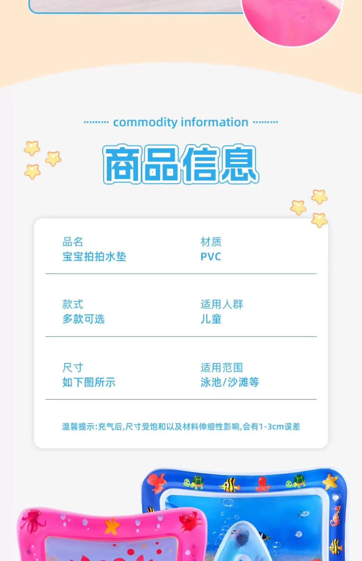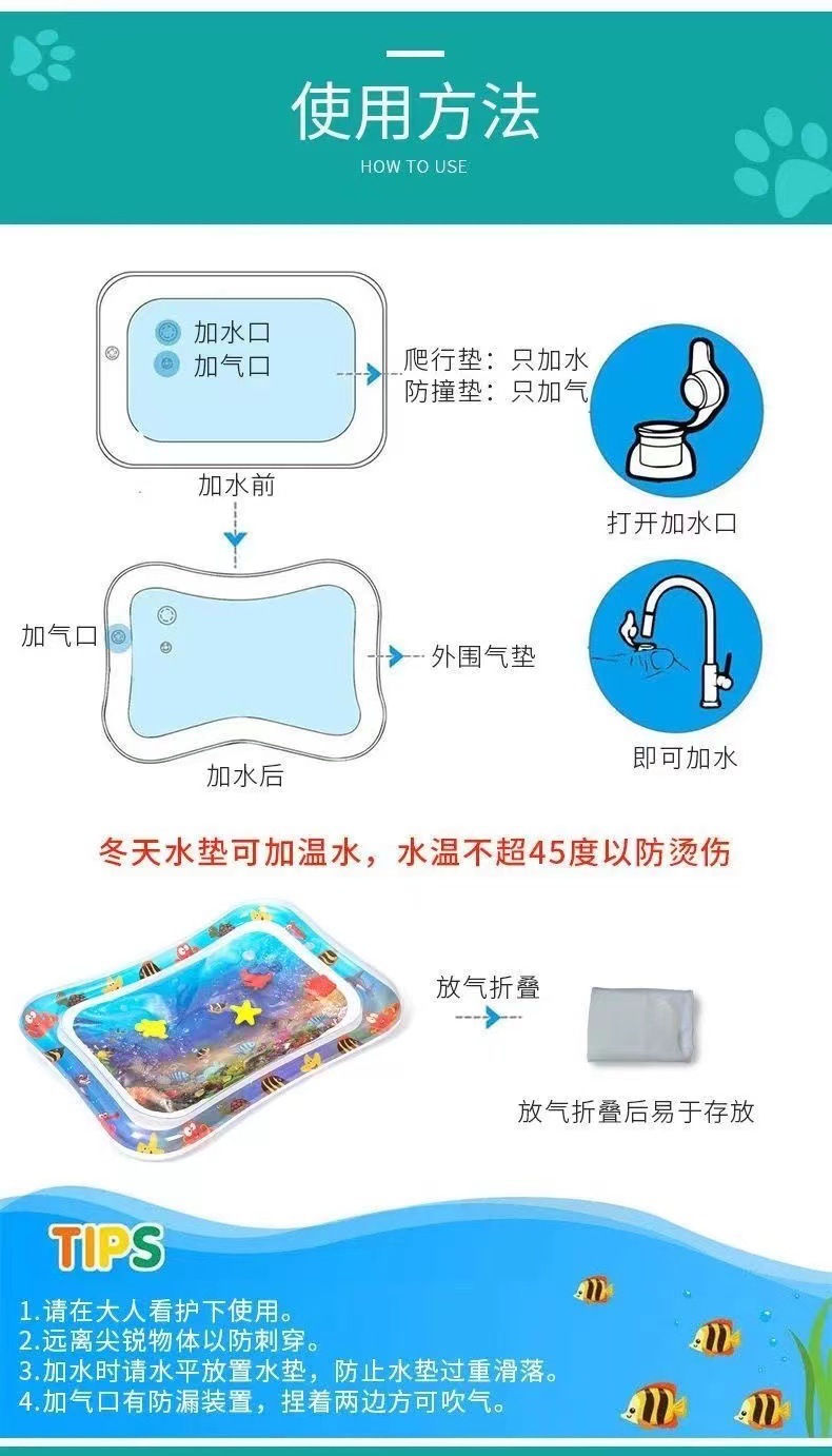 국경 간 어린이 PVC 팽창식 물 매트 아기 팽창식 물 매트 Prone Pat Mat 해양 생물 아이스 매트 부모-자식스토어 가기