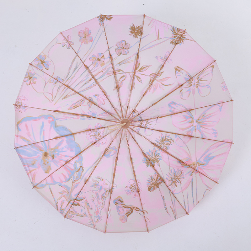 여자 두꺼운 16K Guofeng 컬러 접착제 태양 우산 하이 엔드 레트로 Guofeng Sun 우산 UV 보호 써니 우산