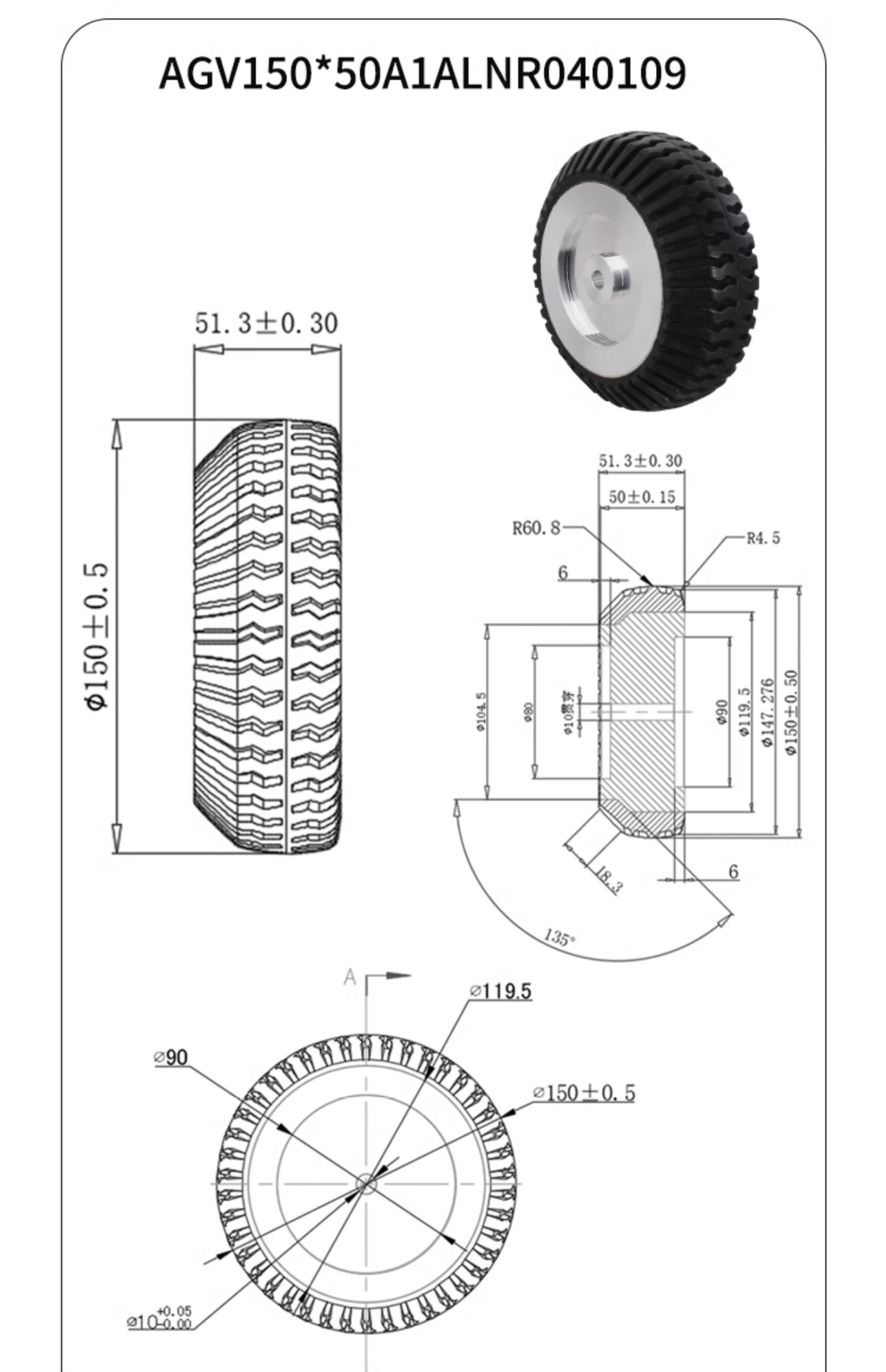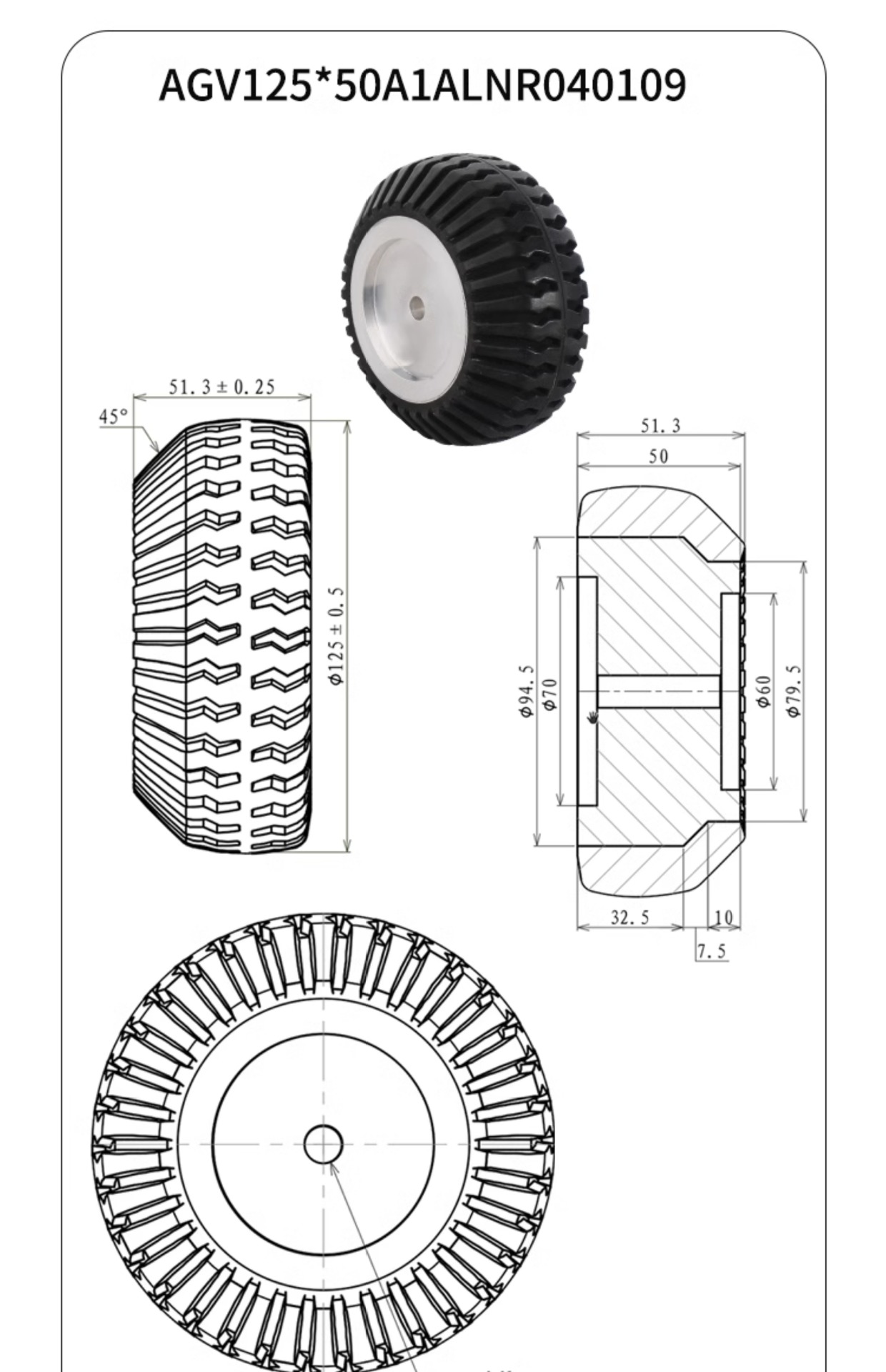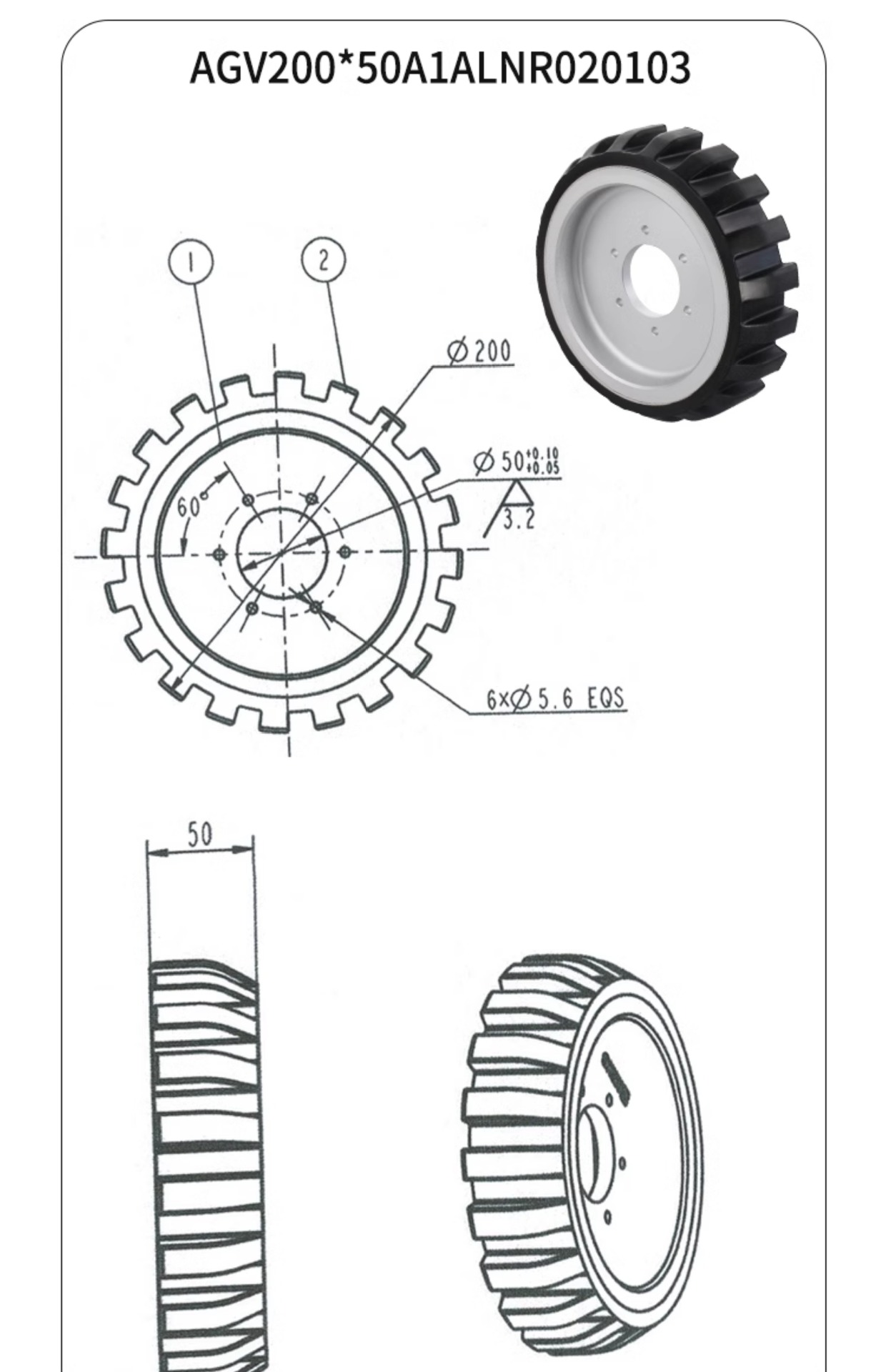 파이프 로봇 휠 agv 미끄럼 방지 고무 구동 휠 알루미늄 합금 고체 고무 휠