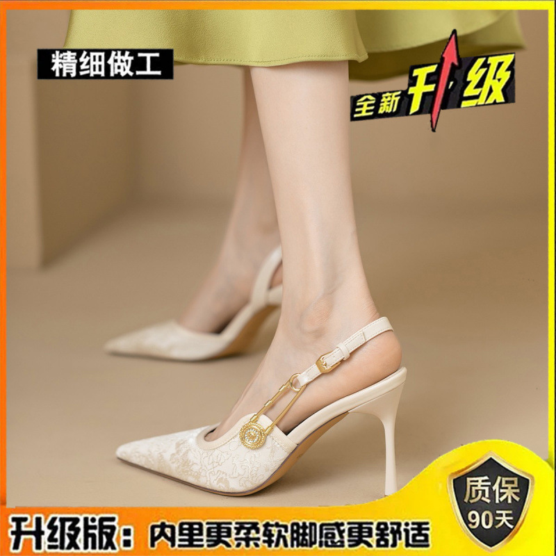 여자 발가락 샌들 2024 새로운 여름 올매치 포인팅 하이힐 우아한 패션 Sequins 프랑스 스타일 작은 Cui Wei스토어 가기