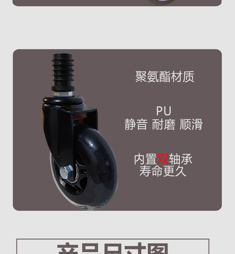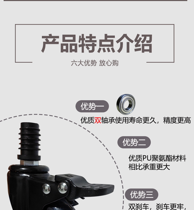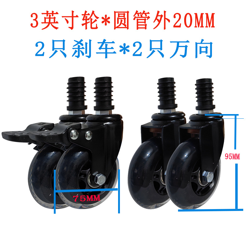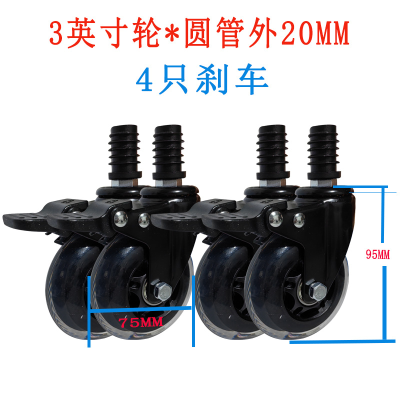 • 3inch 휠*2 브레이크*2 범용(원형 튜브 20MM) PU 폴리우레탄
