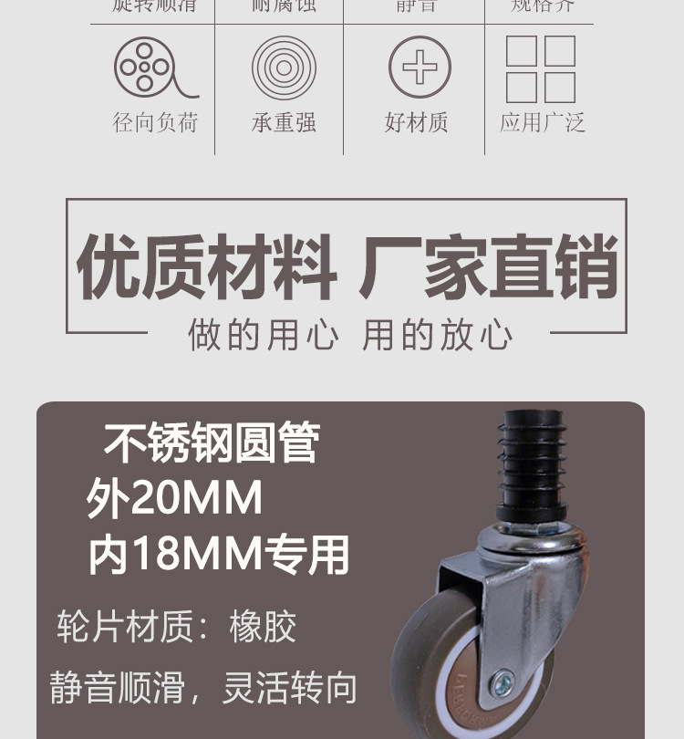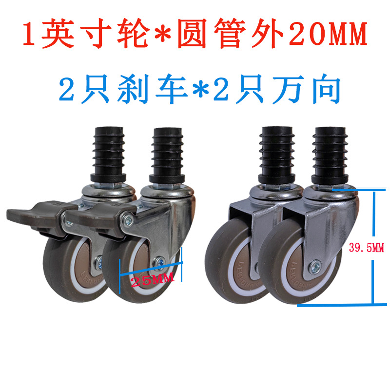 • 1.5inch 휠*2 브레이크*2 범용(원형 튜브 20MM) TPE 고무