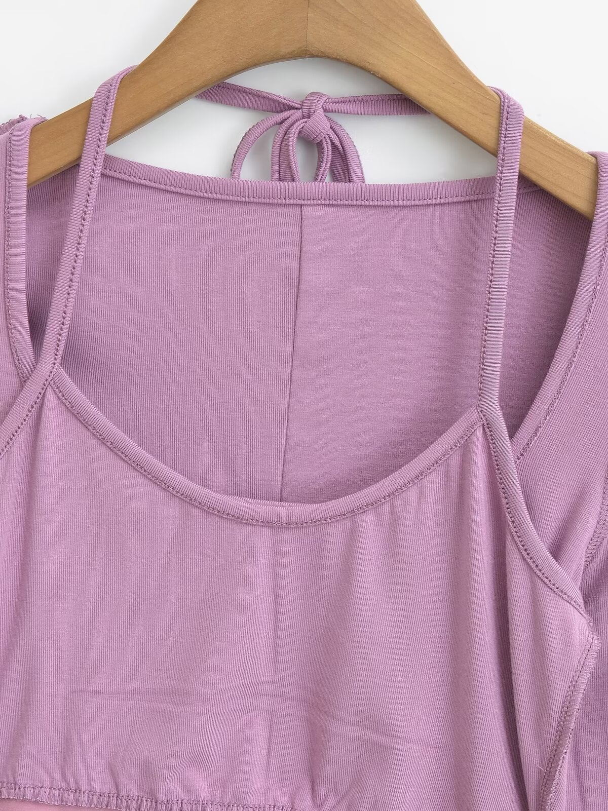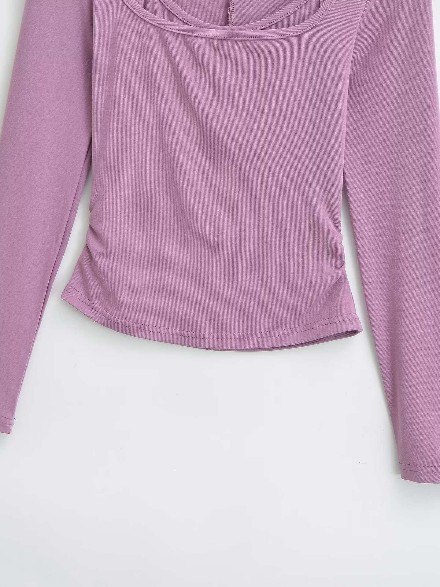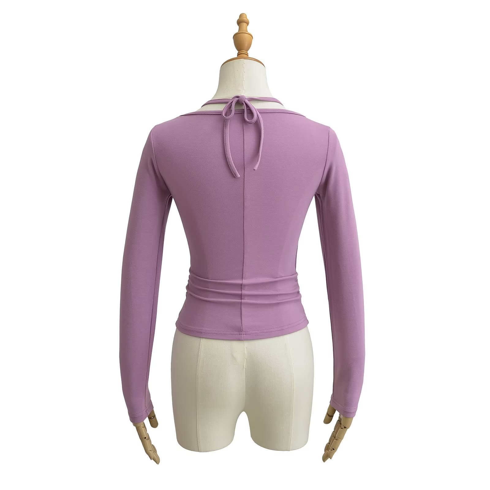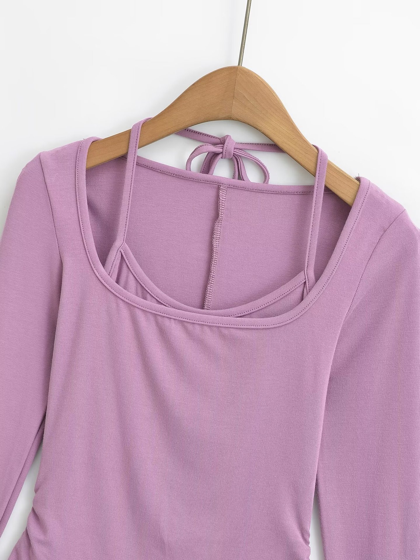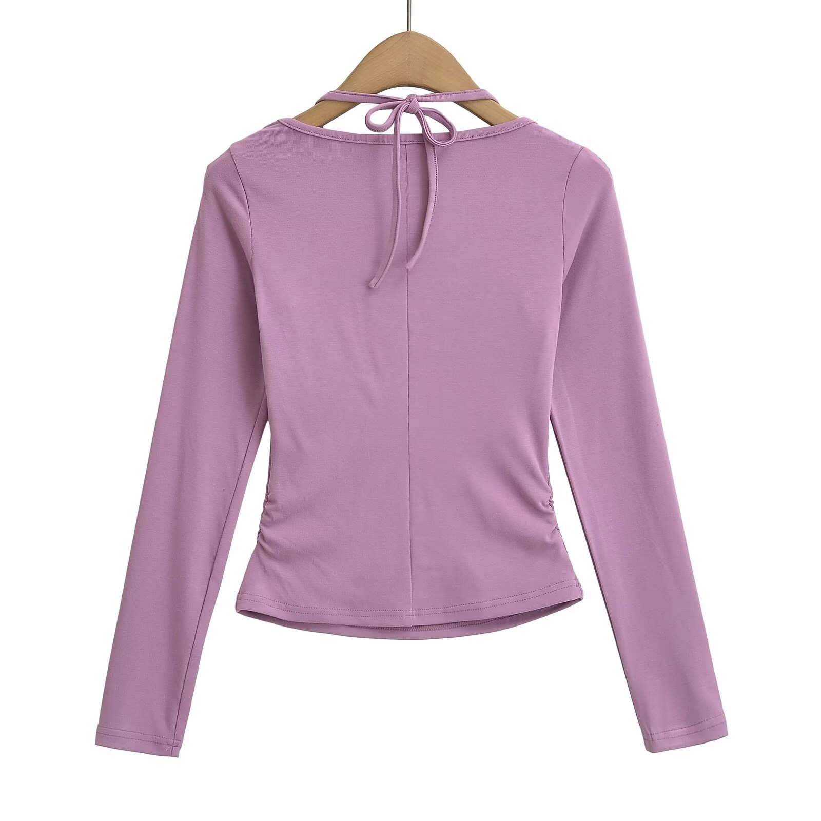 유럽과 미국 스타일 여성의 뜨거운 소녀 스타일 매달려 목 가짜 투피스 긴팔 티셔츠 가을 새로운 슬림 핏 슬리밍베이스 탑