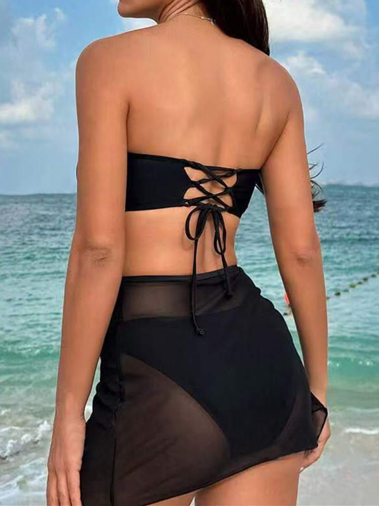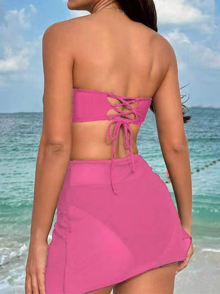 2025 새로운 유럽과 미국의 대외 무역 국경 수영복 3 종 단색 금속 버클 여성 스플릿 비키니 수영복