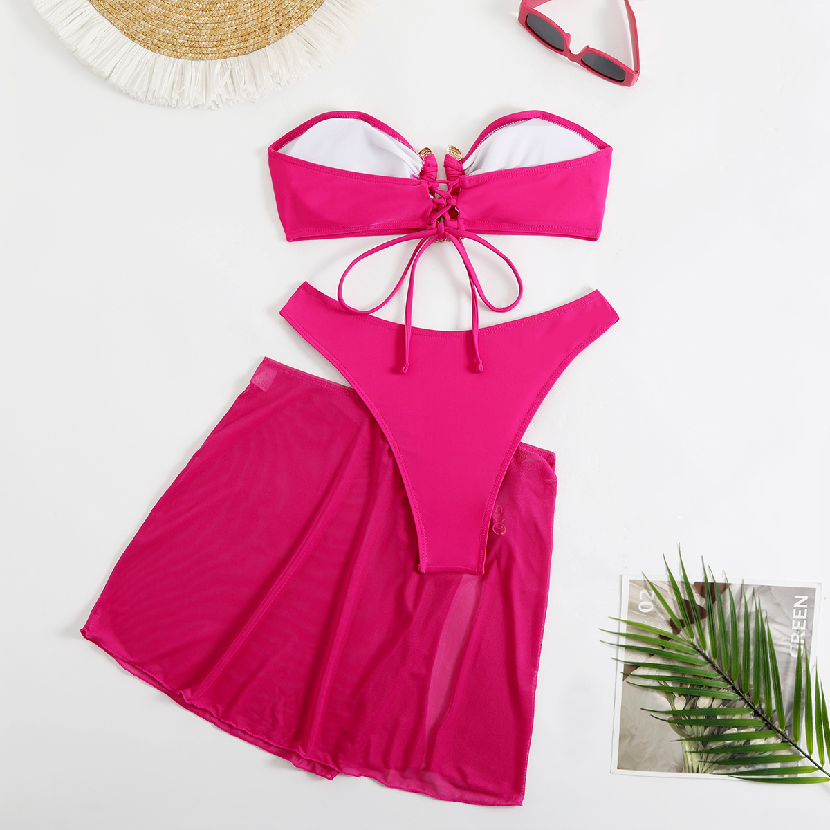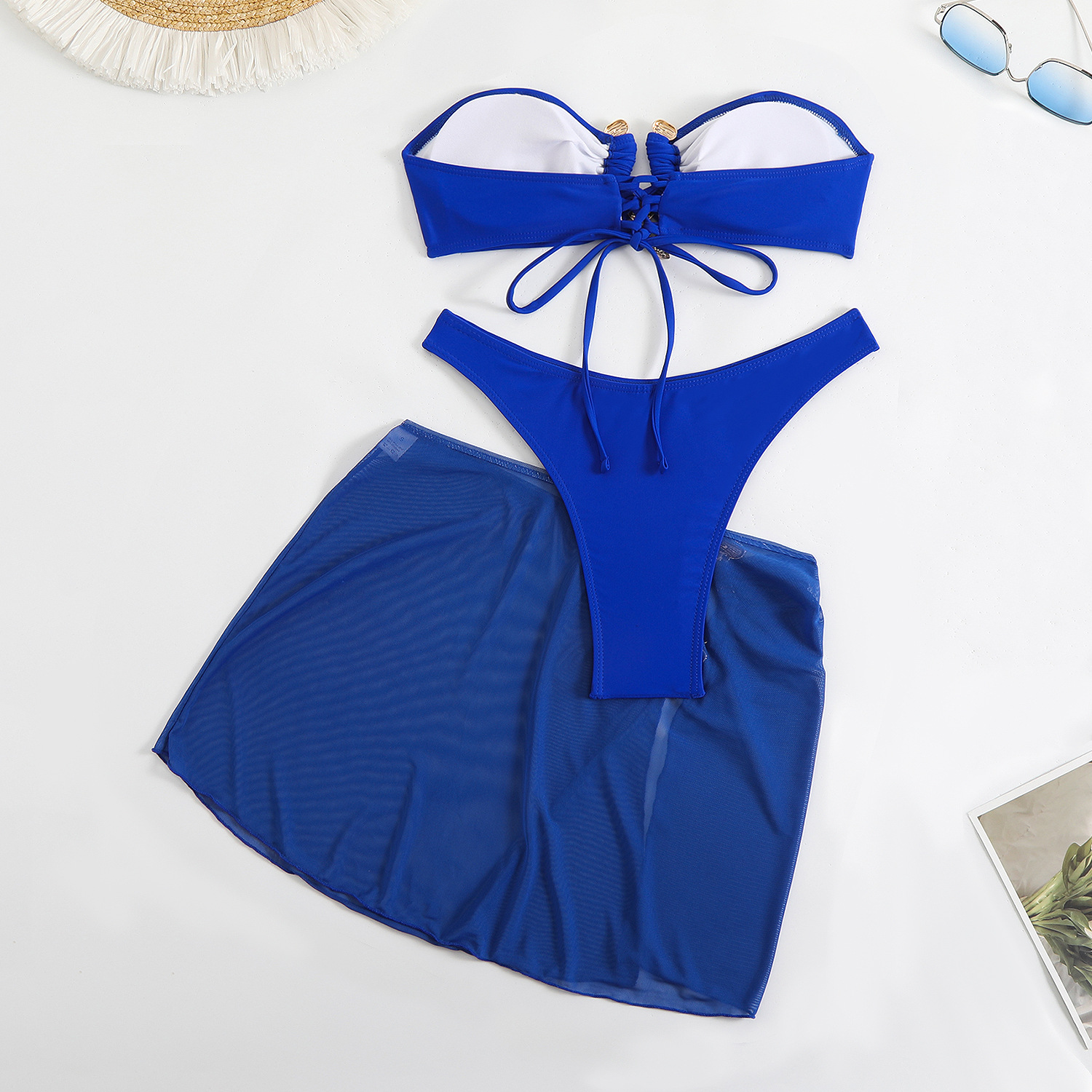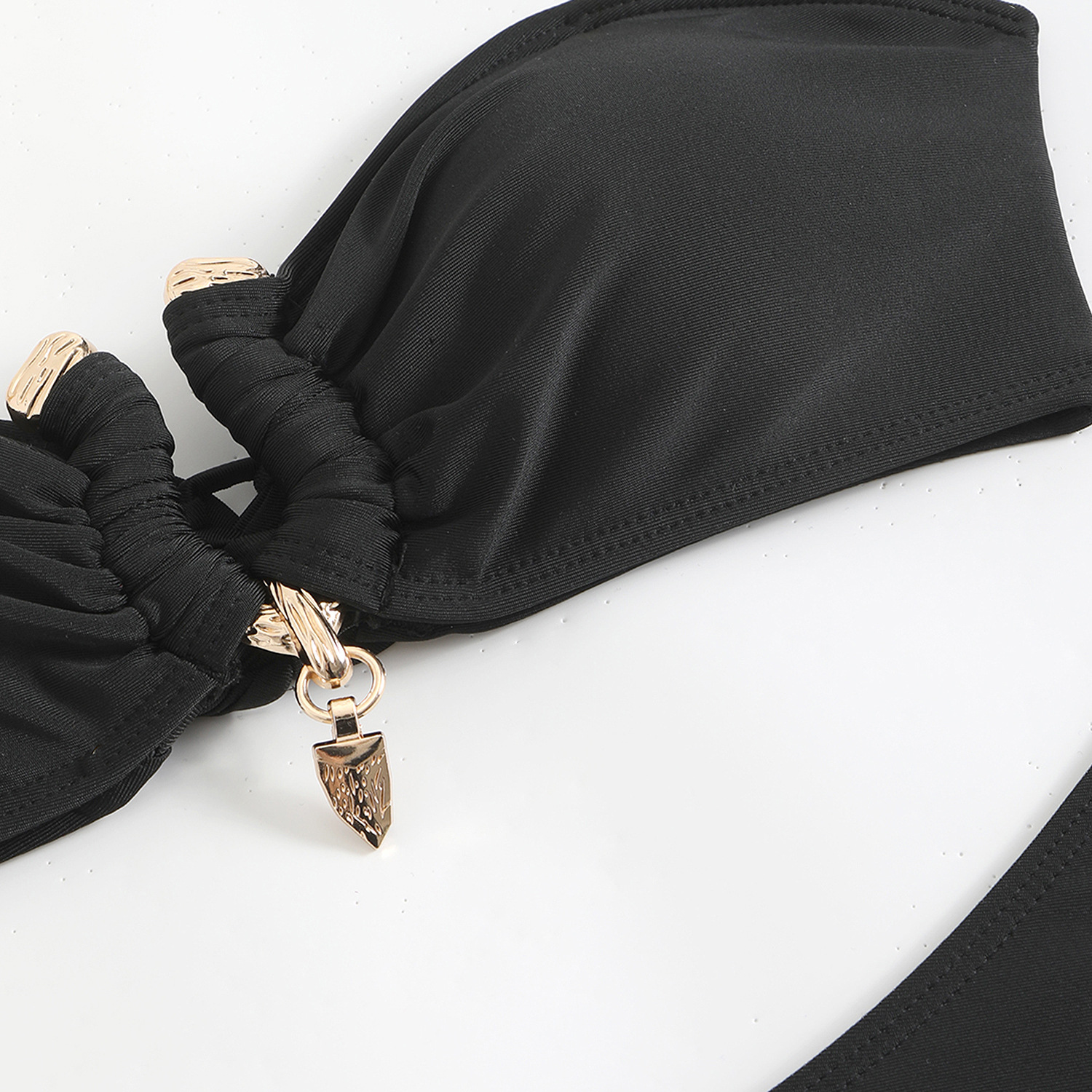 2025 새로운 유럽과 미국의 대외 무역 국경 수영복 3 종 단색 금속 버클 여성 스플릿 비키니 수영복스토어 가기