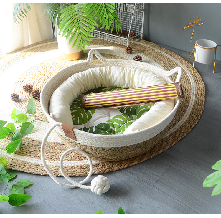 사계절 사용 가능한 등나무 고양이 둥지, 여름용 밀짚 고양이 둥지, 고양이 수면 둥지, 고양이 스크래치 보드, 일체형 매트, 매트, 애완동물 둥지