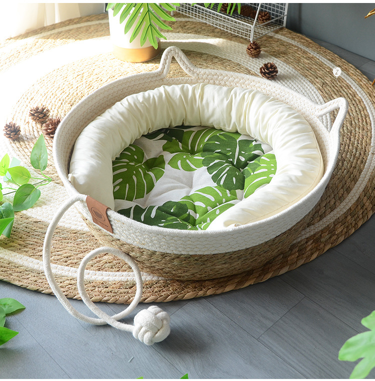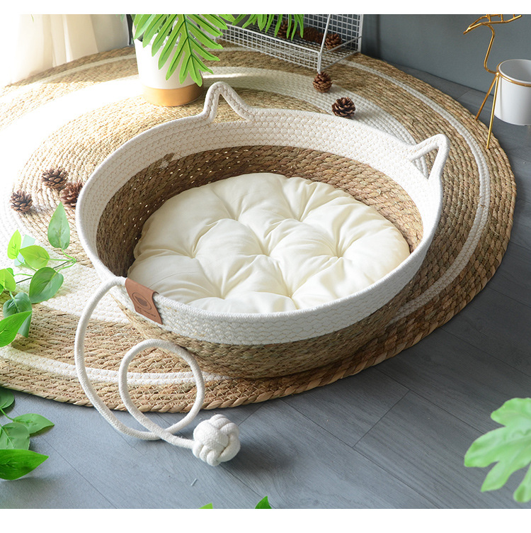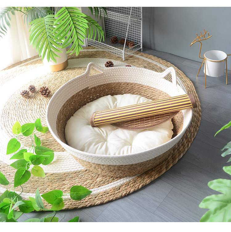 사계절 사용 가능한 등나무 고양이 둥지, 여름용 밀짚 고양이 둥지, 고양이 수면 둥지, 고양이 스크래치 보드, 일체형 매트, 매트, 애완동물 둥지스토어 가기