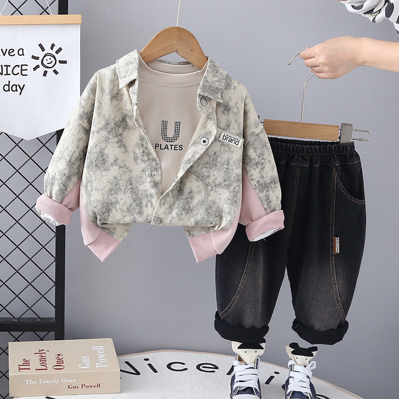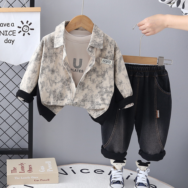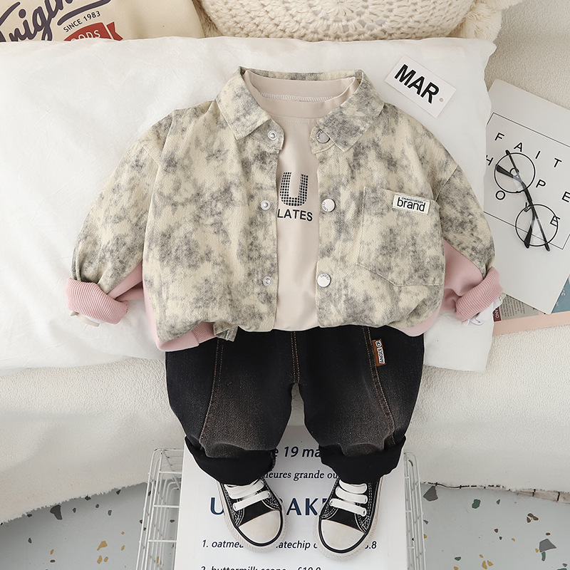 소년 세트 봄 옷 서양식 캐주얼 1-3 세 아기 봄과 가을 옷 아기 어린이 넥타이 염색 스타일 3 피스 세트