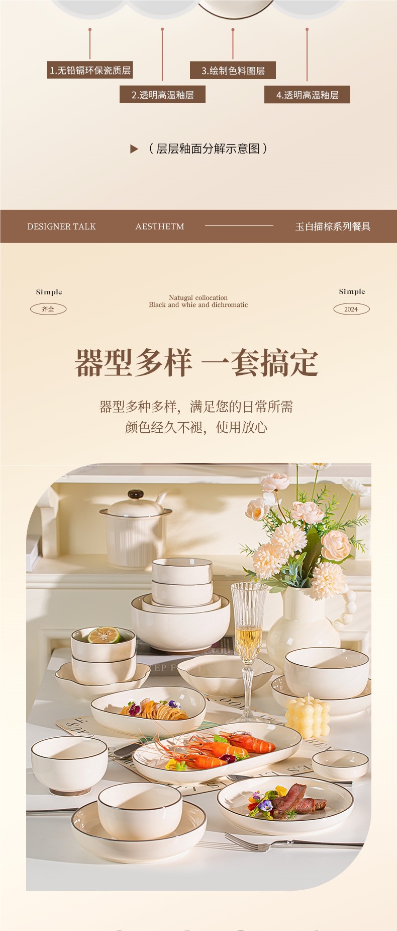 Underglaze Color Tableware 세트 2024 새로운 높은 색상 가치 요리 세트 가정용 크림 스타일 요리 젓가락 집게 그릇