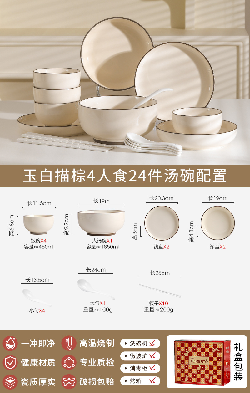 • [따뜻한 4인분] 제이드 앤 화이트 드림 24종 세트★국그릇 구성(브라운 스타일) GB-8293
