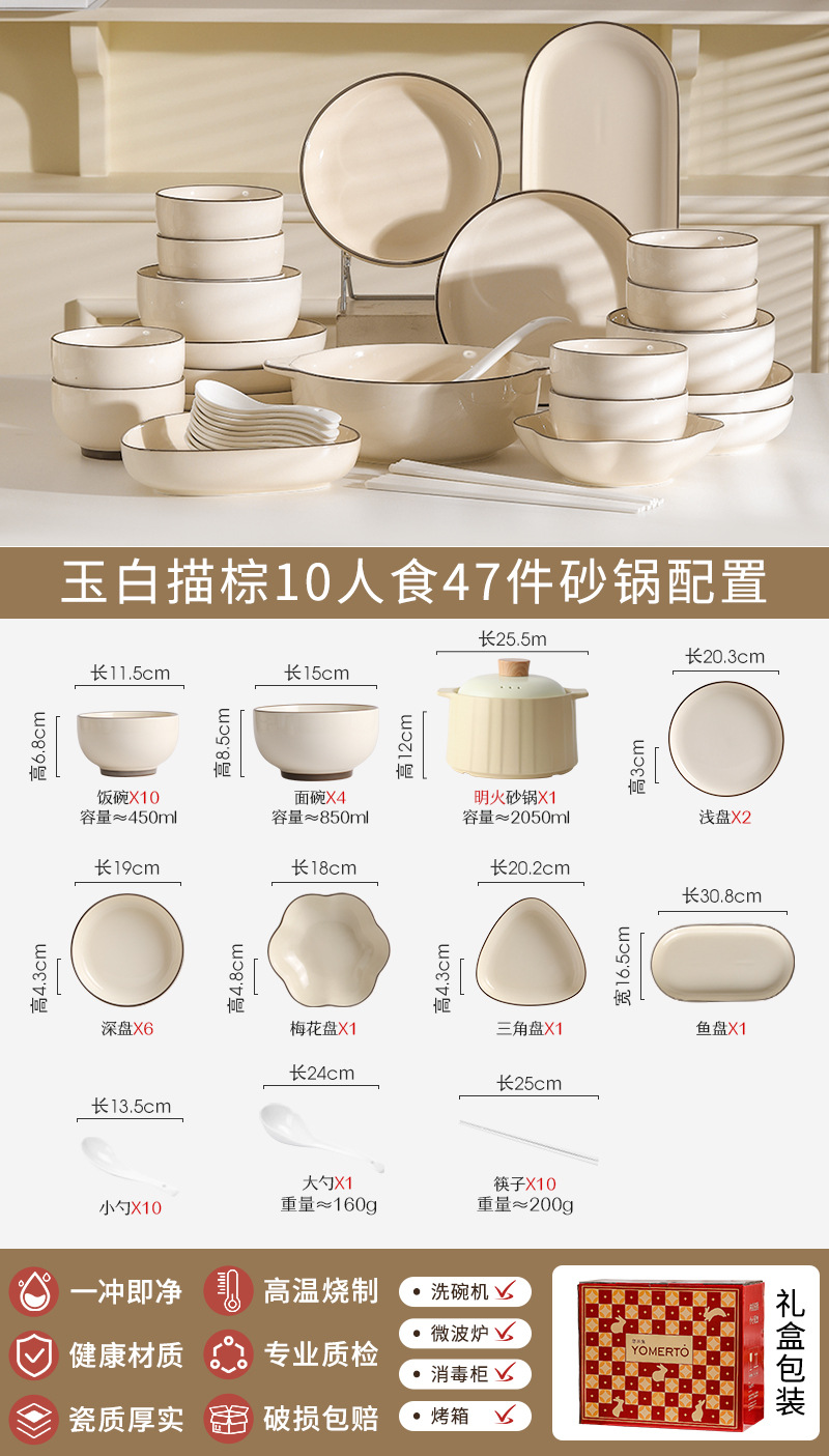Underglaze Color Tableware 세트 2024 새로운 높은 색상 가치 요리 세트 가정용 크림 스타일 요리 젓가락 집게 그릇스토어 가기