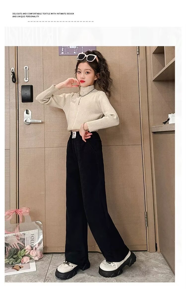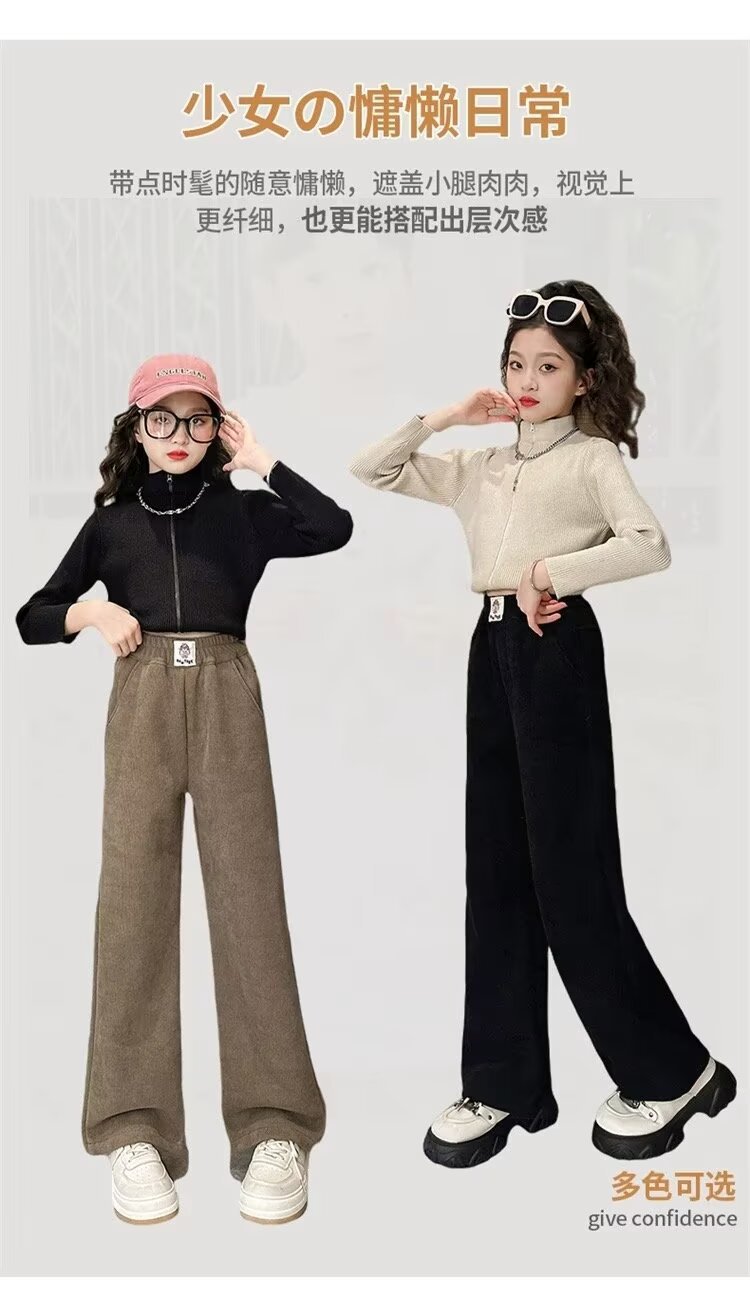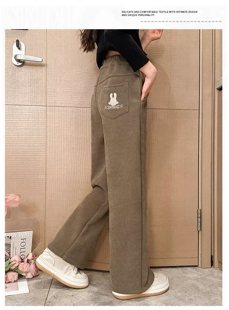 소녀의 봄과 가을 바지 가을과 겨울 2024 새로운 유행 여자 겨울 착용 어린이 겨울 느슨한 넓은 다리 캐주얼 바지