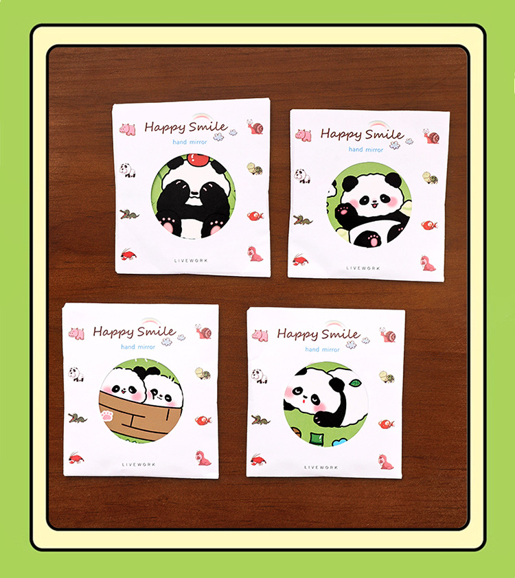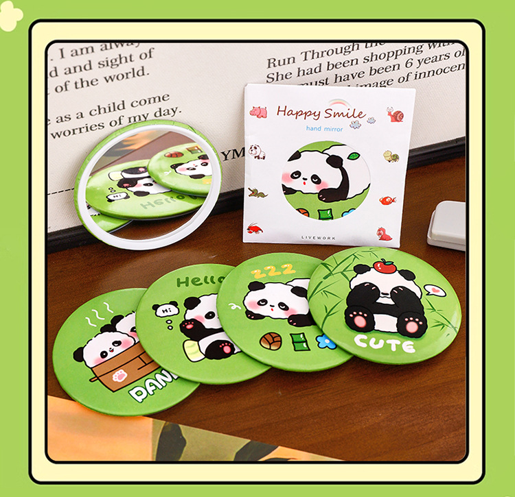 귀여운 팬더 작은 둥근 거울 학생 미니 휴대용 휴대용 거울 높은 색상 가치 만화 메이크업 거울 상 선물스토어 가기