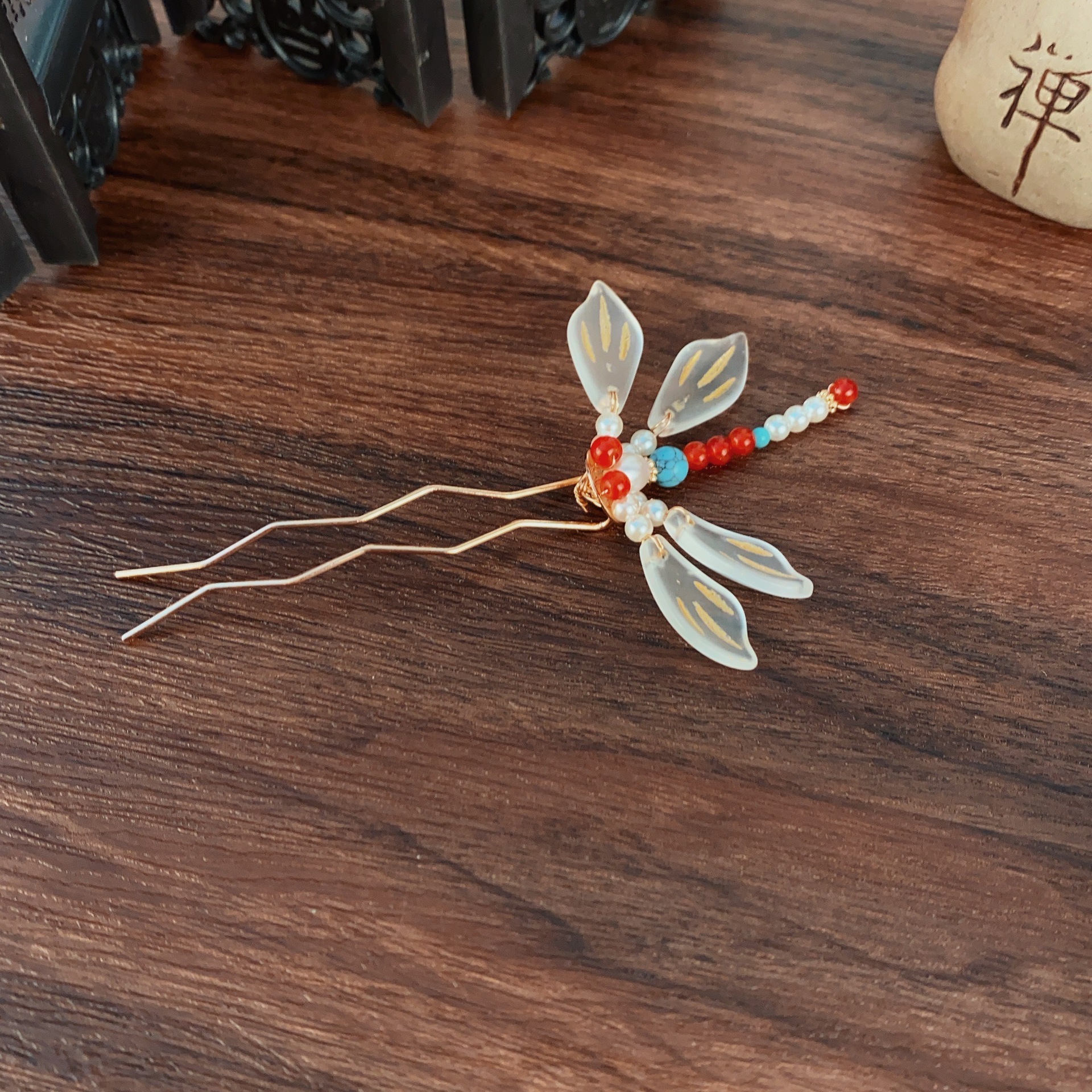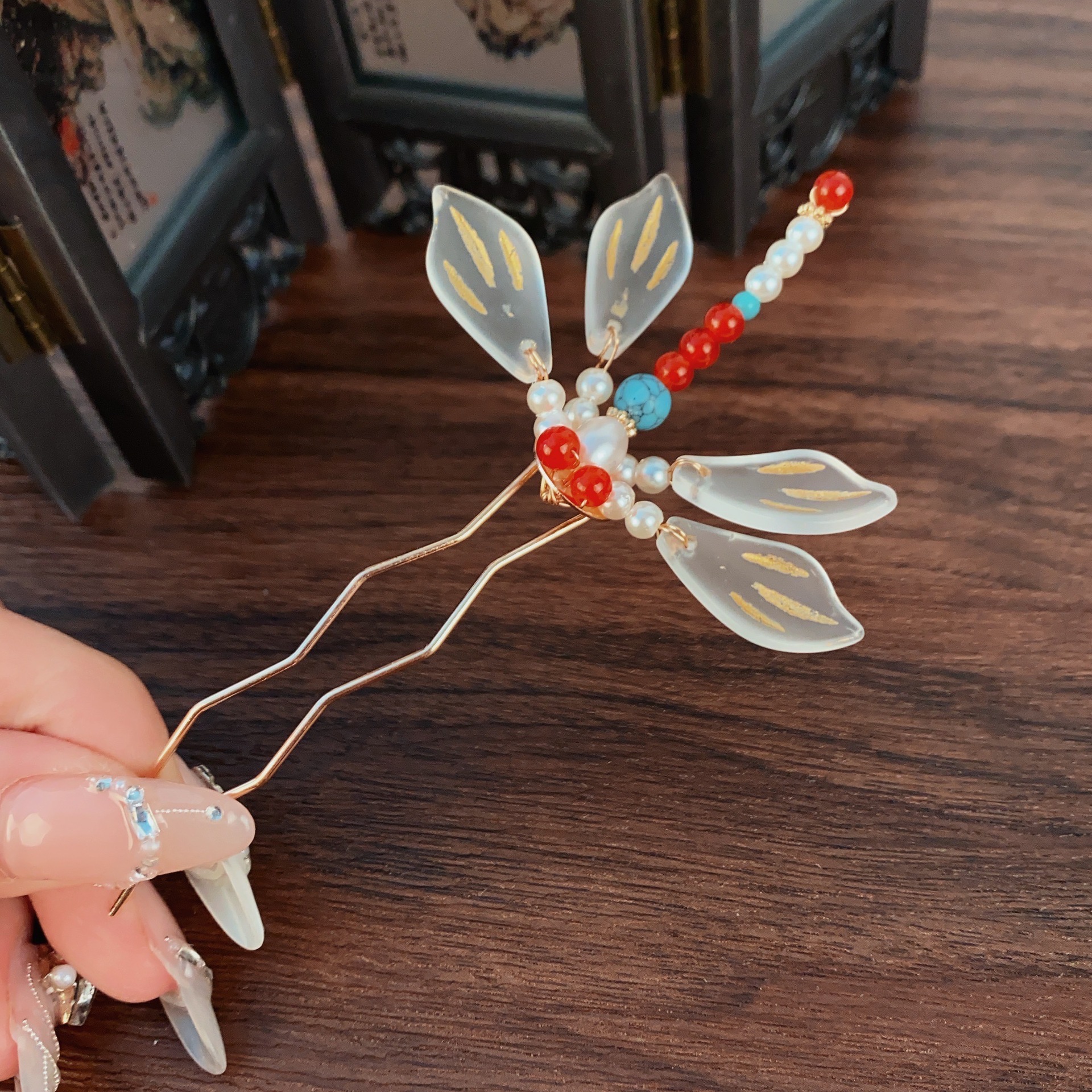 새로운 중국 스타일 모방 청록색 잠자리 헤어핀 여성 골동품 맞춤형 U 자형 헤어핀 틈새 디자인 빈티지 올 매치 헤어 액세서리
